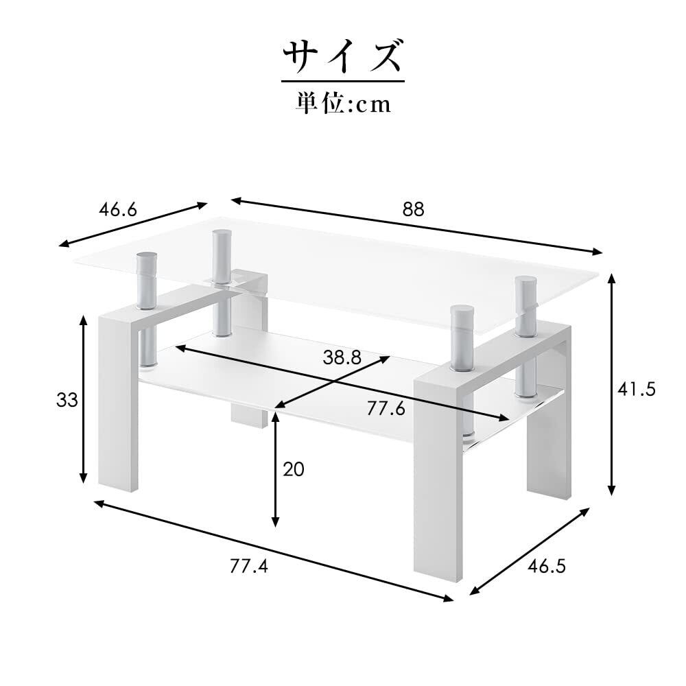 (OSJ)ガラステーブル コーヒーテーブル 幅88cm 強化ガラス天板(クリア天板+ホワイト脚)