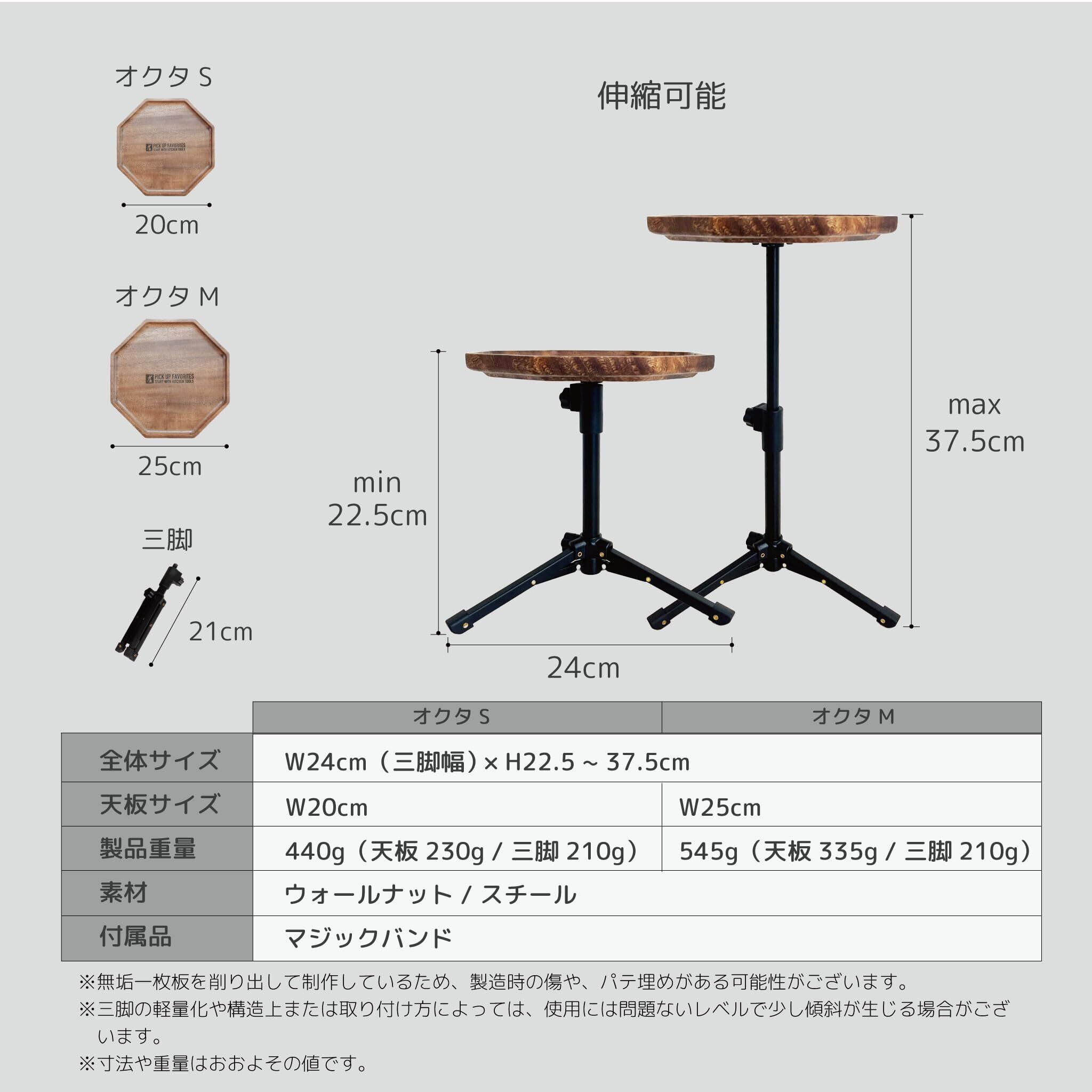 【製品重量】Sサイズ:440g(天板230g / 三脚210g)/ Mサイズ:545g(天板335g / 三脚210g)