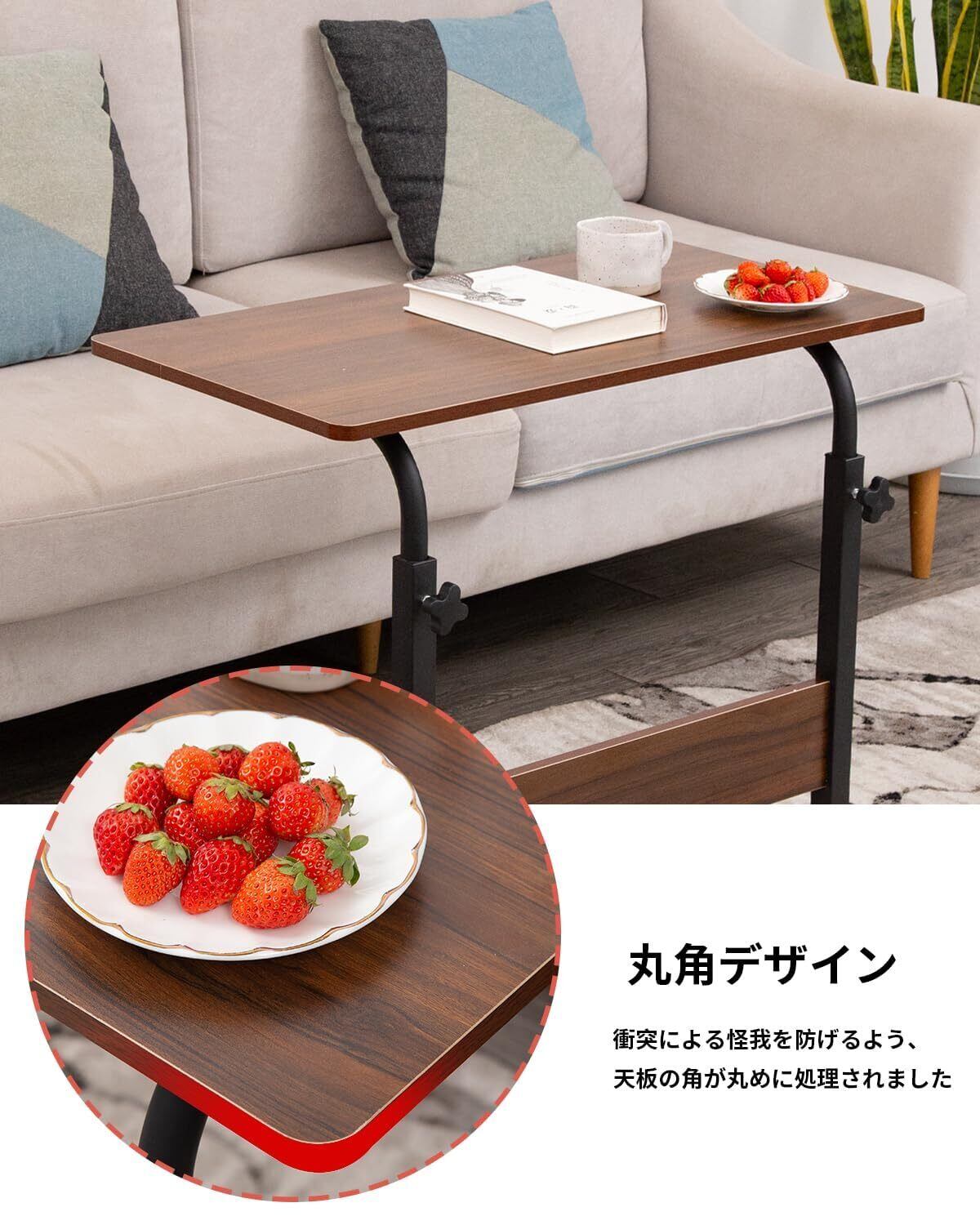 JUPEA サイドテーブル キャスター付き 幅60/80cm 昇降式テーブル コの字 ベッドサイドテーブル サイドテーブル 高さ調節 昇降式サイドテーブル 高さ調整 テーブル 組立簡単 説明書付き 多目的 奥行40cm×高さ65-90㎝ (ブラウン, 80CM)