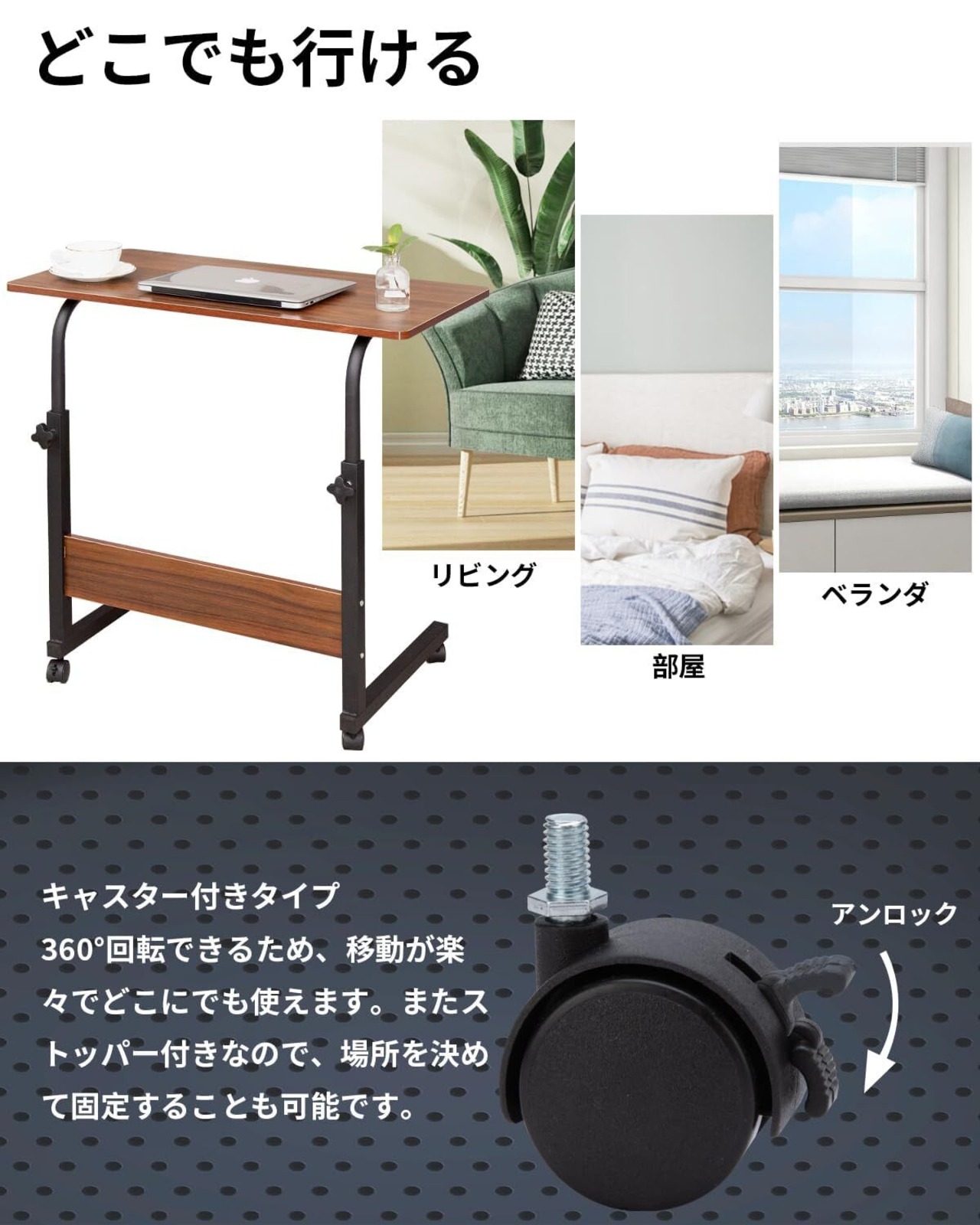 ■自由な高さ調整が可能!■テーブルの高さは65cmから90cmまで自由に調整できます。ソファやベッドのサイドテーブルとして、またスタンディングデスクとしても利用でき、あなたのライフスタイルに合わせた使い方が可能です。