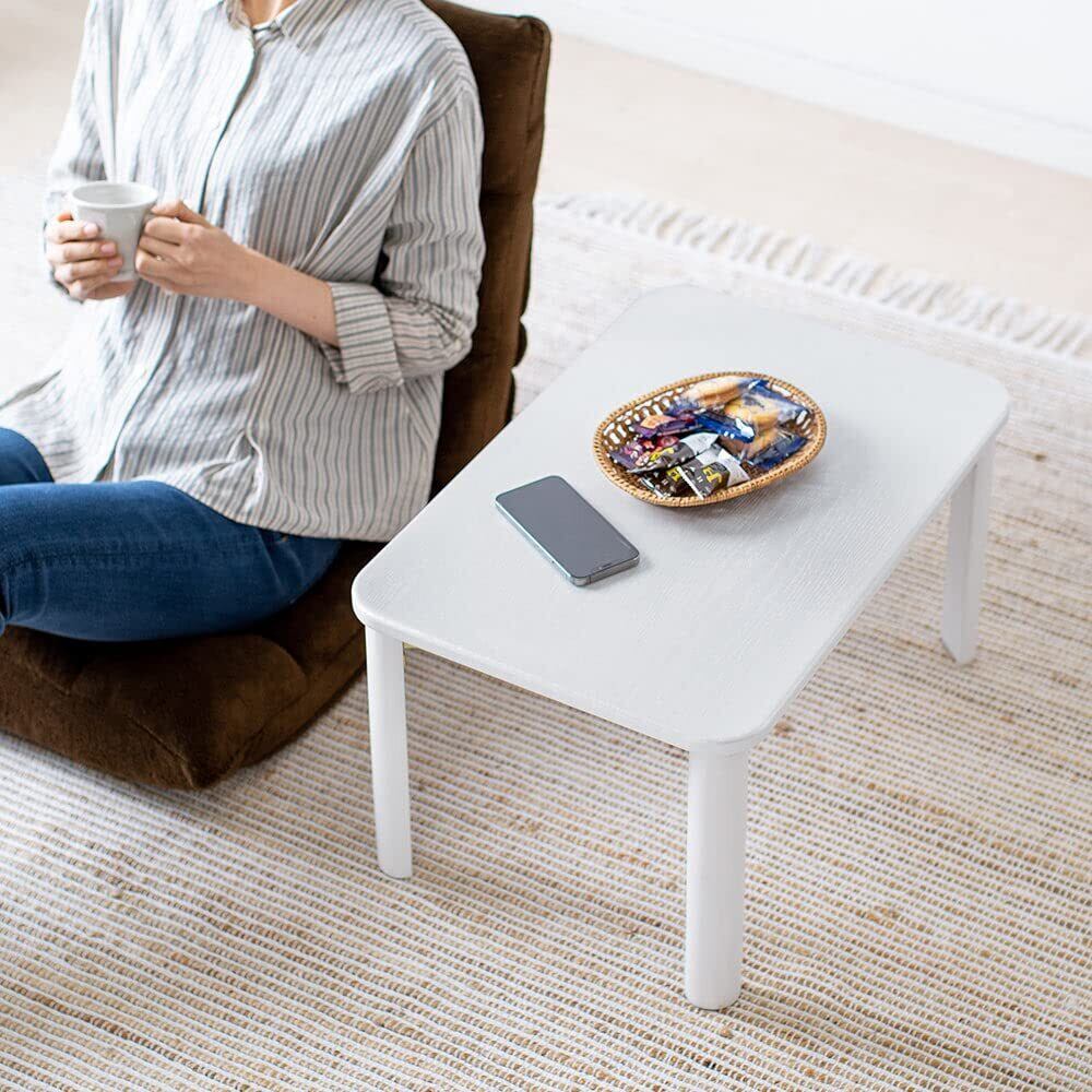 イーサプライ 折りたたみテーブル ちゃぶ台 幅60×奥行40×高さ32cm 木製 ローテーブル 木目調 コンパクト 角丸 ホワイト EEX-DK06WHW