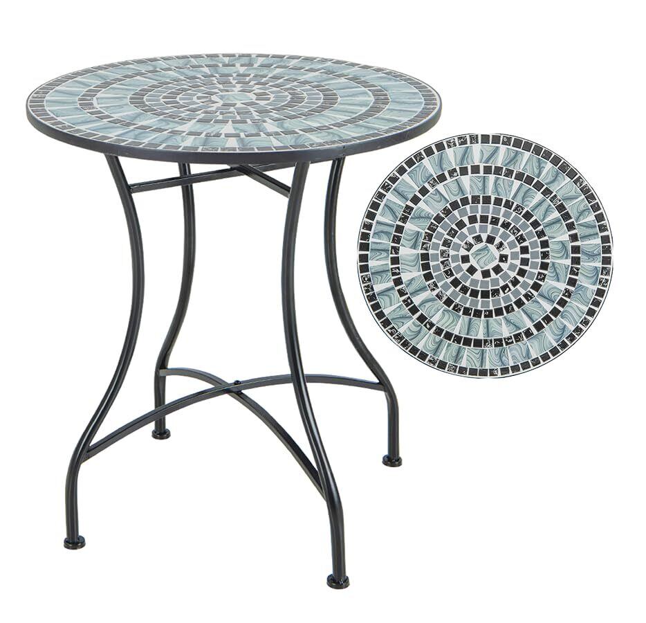 ◆◆TANGKULA ガーデンテーブル 直径60cm 耐荷重50kg タイルテーブル 防水 モザイク柄 アンティーク調 机 庭 パティオ テラス アウトドア ベランダ 屋外 屋内 アイアン製 おしゃれ 組立簡単 浅緑色◆