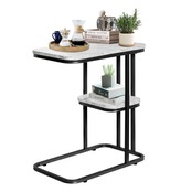 【スタイリッシュなU型ソファサイドテーブル!】このオシャレなサイドテーブルは、大理石調のデザインが特徴で、どんなインテリアにもマッチします。省スペース設計ながらも、しっかりとした収納棚を備えており、リビングや寝室での必需品になること間違いなしです。