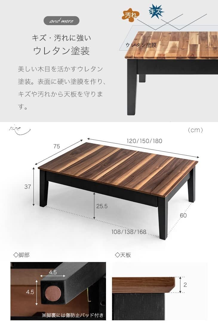 【サイズ】外寸:約幅120/150/180x奥行75x高さ37cm [天板厚]約2cm