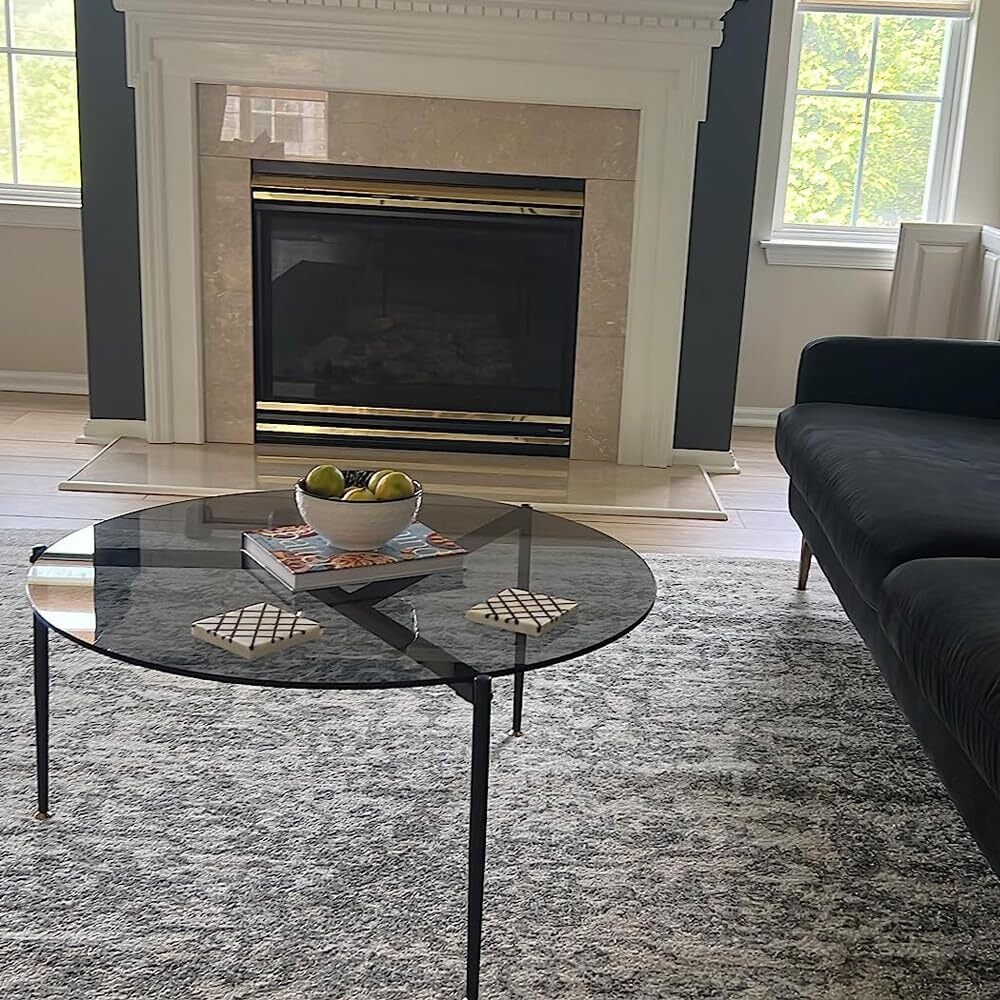 Artloge ローテーブル ガラス センターテーブル 丸 ガラステーブル 幅80㎝ リビングテーブル 円形 おしゃれ 丸テーブル グレー