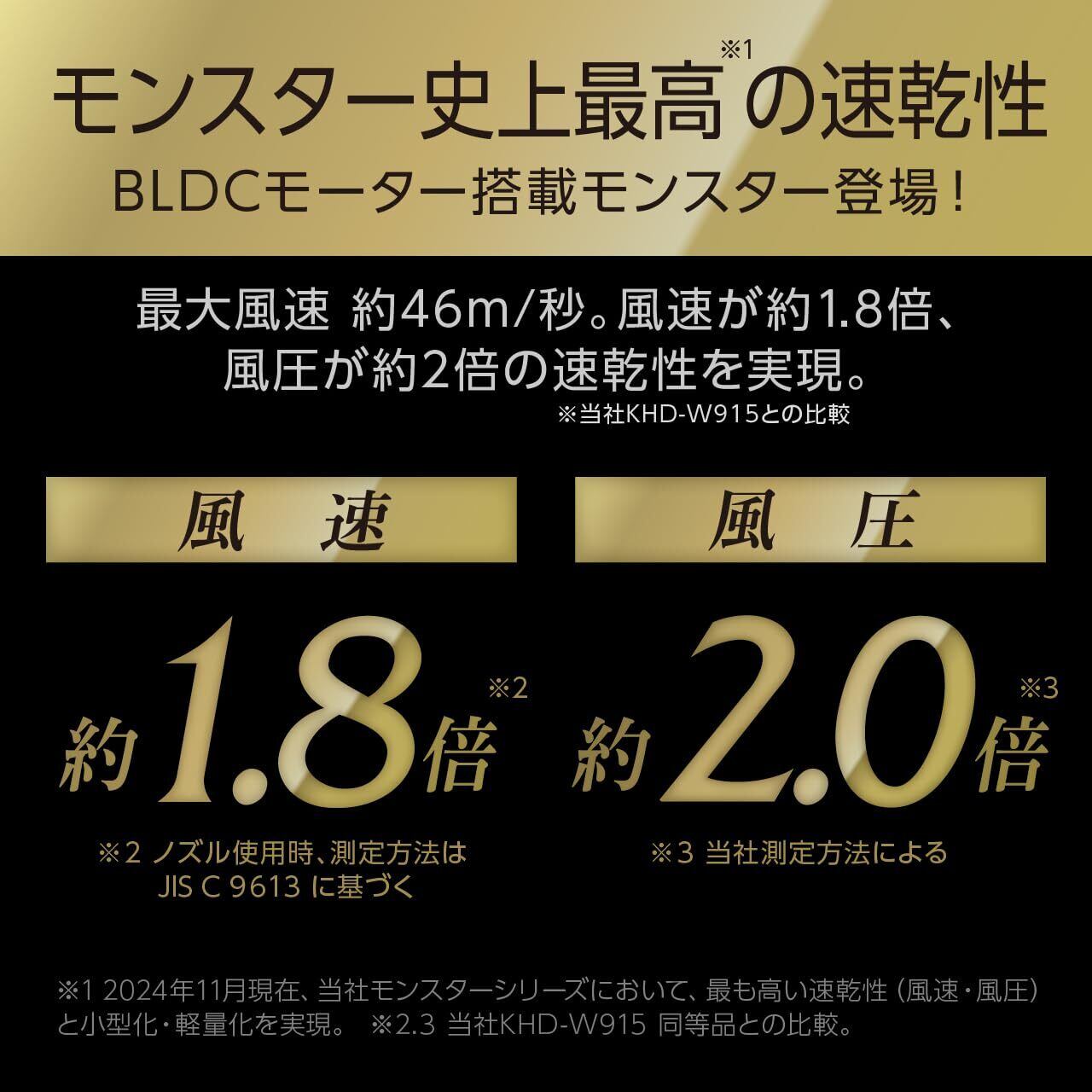 ●最大風速約46m/秒。BLDCモーター搭載、小型軽量化
