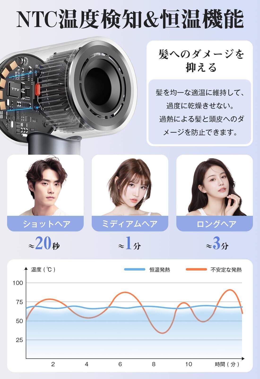 ◆◆ドライヤー 大風量 速乾【2025新設計・3億高濃度マイナスイオン】 ヘアドライヤー ブラシレスDCモーター 美髪 ヘアケア 美容師監修 12通りの風をカスタマイズ可 NTC温度制御システム 過熱防止 軽量コンパクト 持ち運び便利 静電気除去 タッチスクリーン 省エネ ヘアサロン/家庭用/旅行用 PSE認証済み ホルダー/マグネット式ノズル付き 日本語説明書付き◆