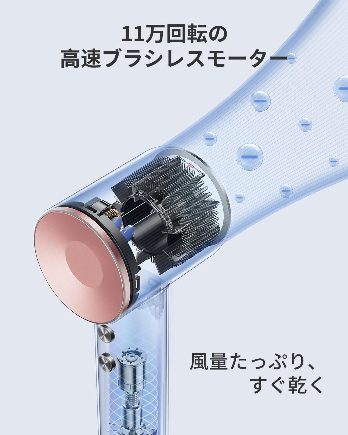 【高速ブラシレスモーター、大風量で素早く乾燥】Laifen SWIFT ヘアドライヤーは、11万回転/分の高速ブラシレスモーターを搭載し、風速は最大22メートル/秒にまで達します。力強い風で髪を素早く乾かし、50%の乾燥時間を節約。髪の長さや質に関わらず、通常2-8分で乾かすことができ、より多くの自由時間を楽しむことができます。
