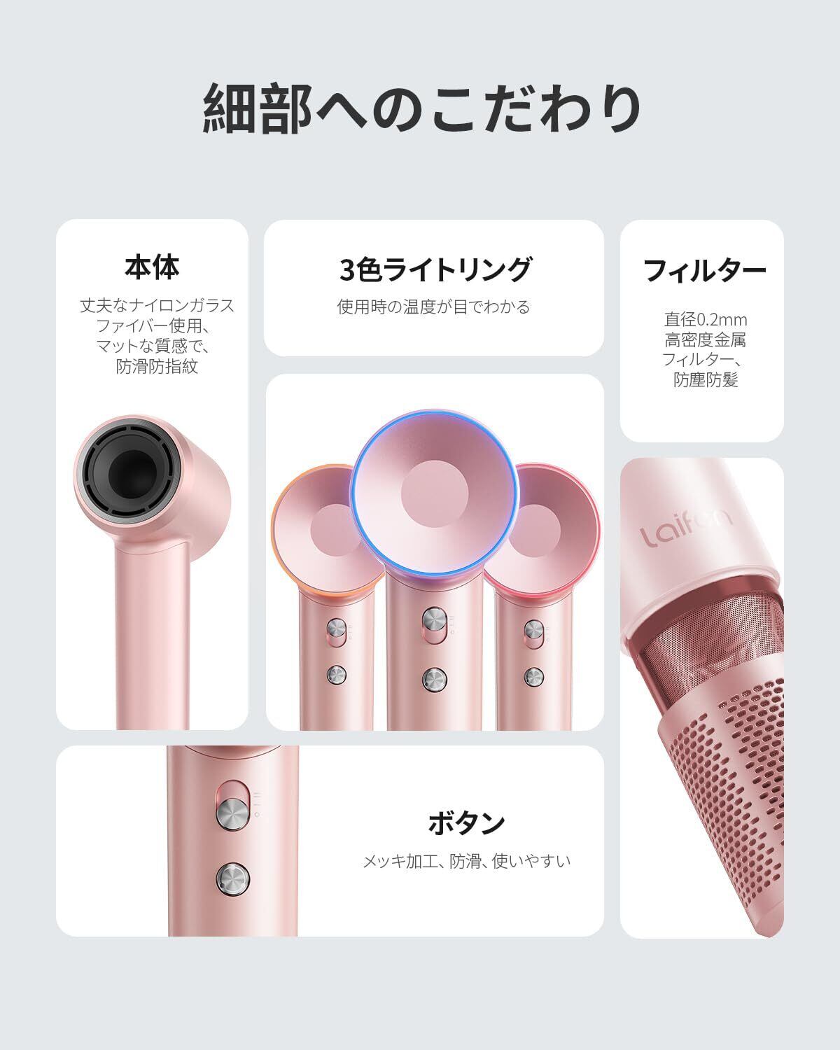 ◆◆Laifen ライフェン ドライヤー SWIFT 大風量 速乾 高濃度2億マイナスイオン 110,000回転/分 ヘアドライヤー 静音設計 22m/s 温風・冷風 8モード 過熱防止 軽量コンパクト 持ち運び便利 低騒音 静電気除去 マグネット式ノズル付き 家庭用/旅行用 (サクラピンク)◆