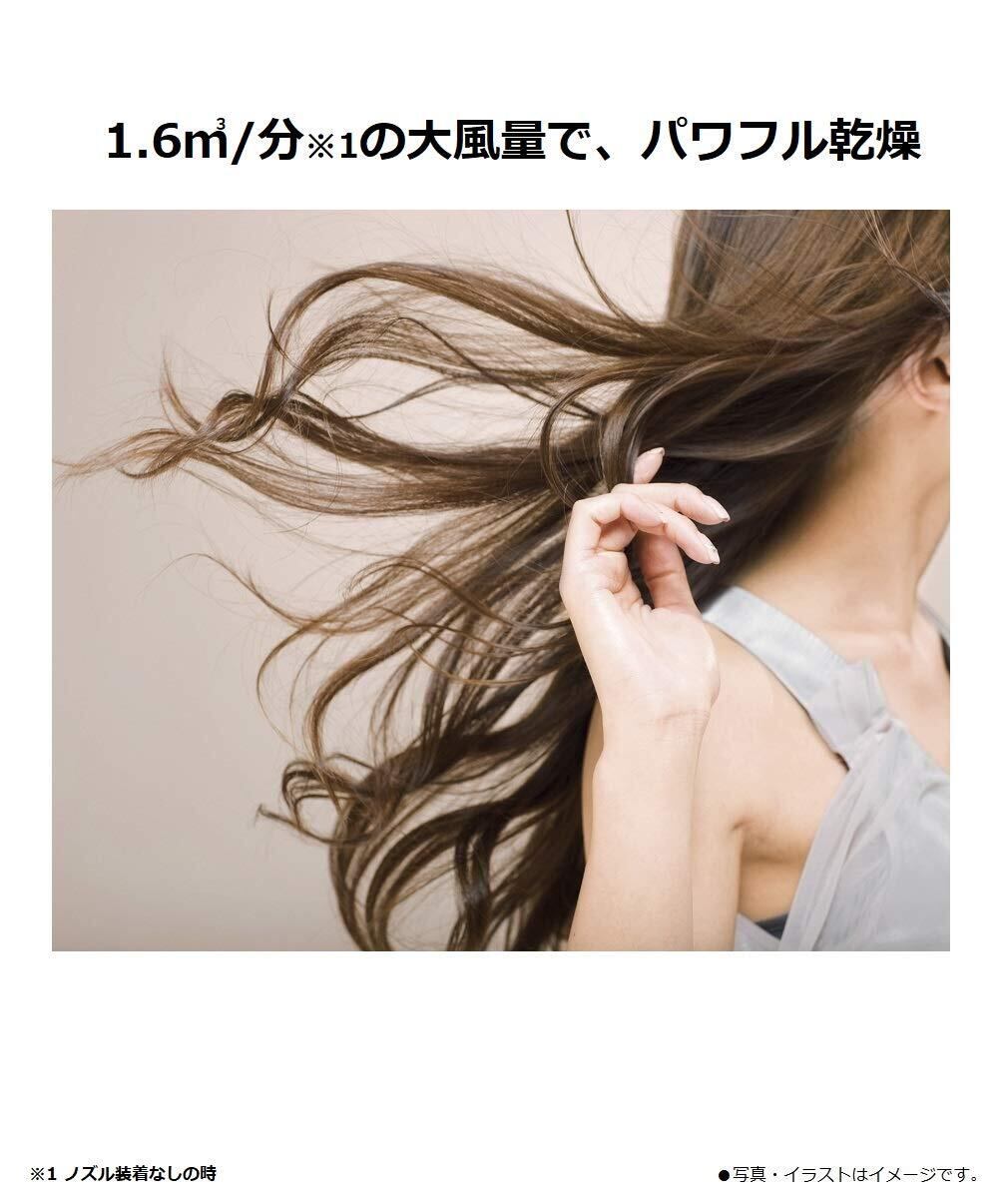 ■パワフルな風量で時短乾燥!■このドライヤーは、最大風量が2.0㎥/分(TURBO時・ノズル装着なし)を実現。忙しい朝もあっという間に髪を乾かすことができます。さらに、ミネラルマイナスイオンを放出し、静電気を抑えてまとまりやすい仕上がりに導きます。