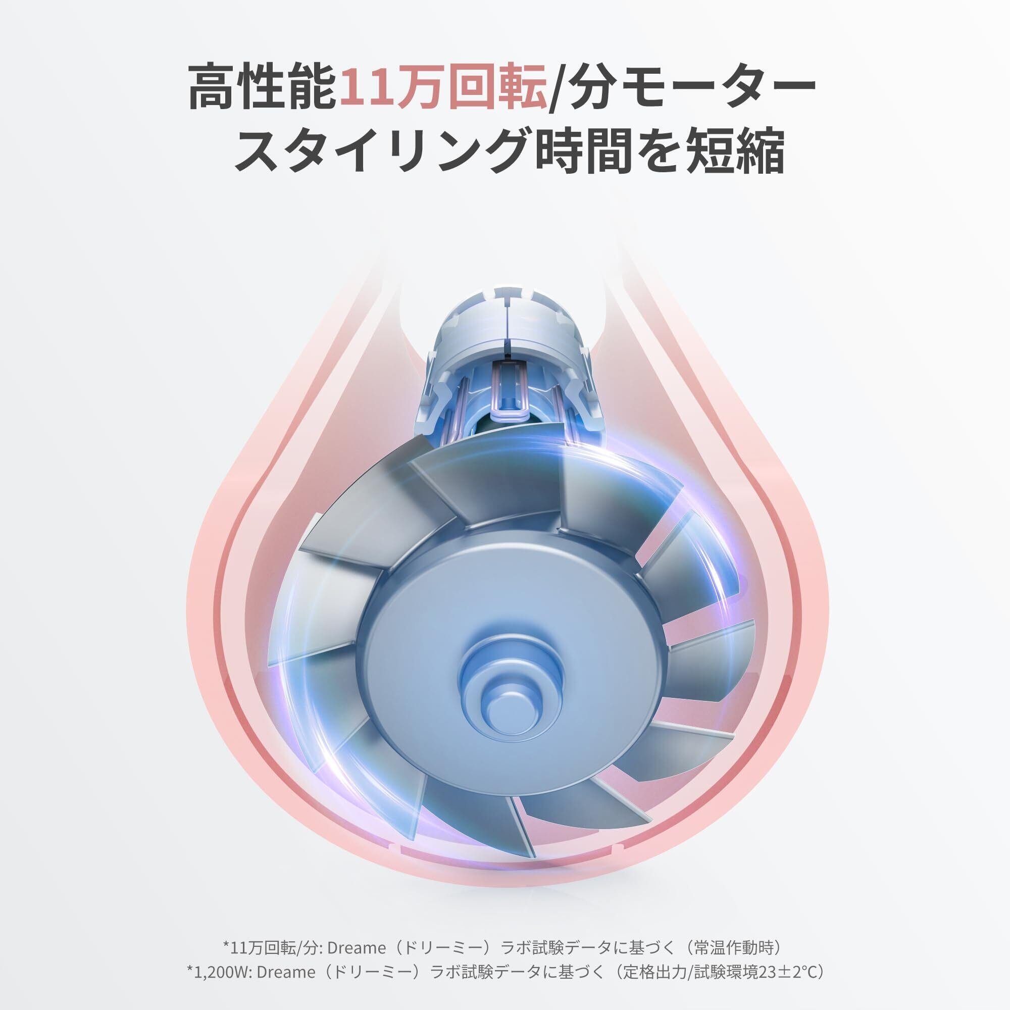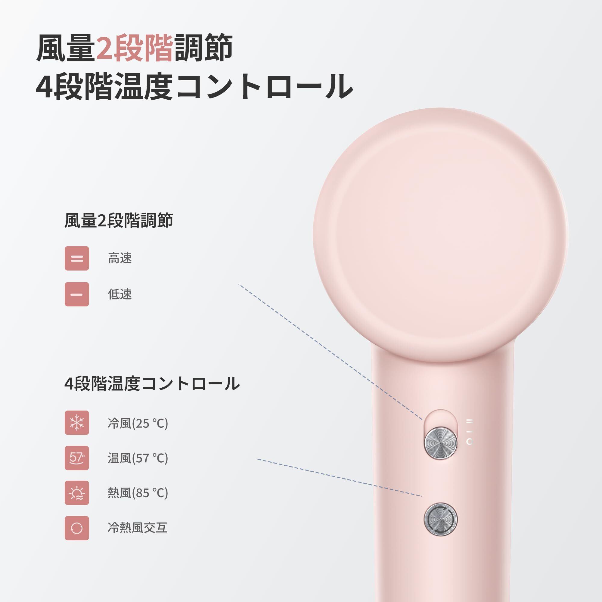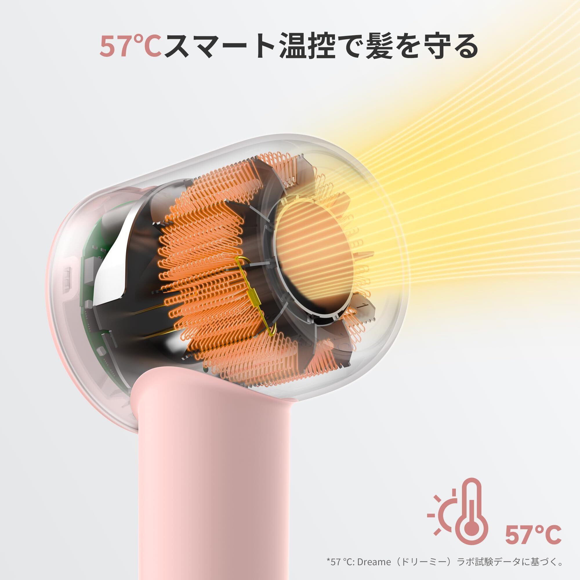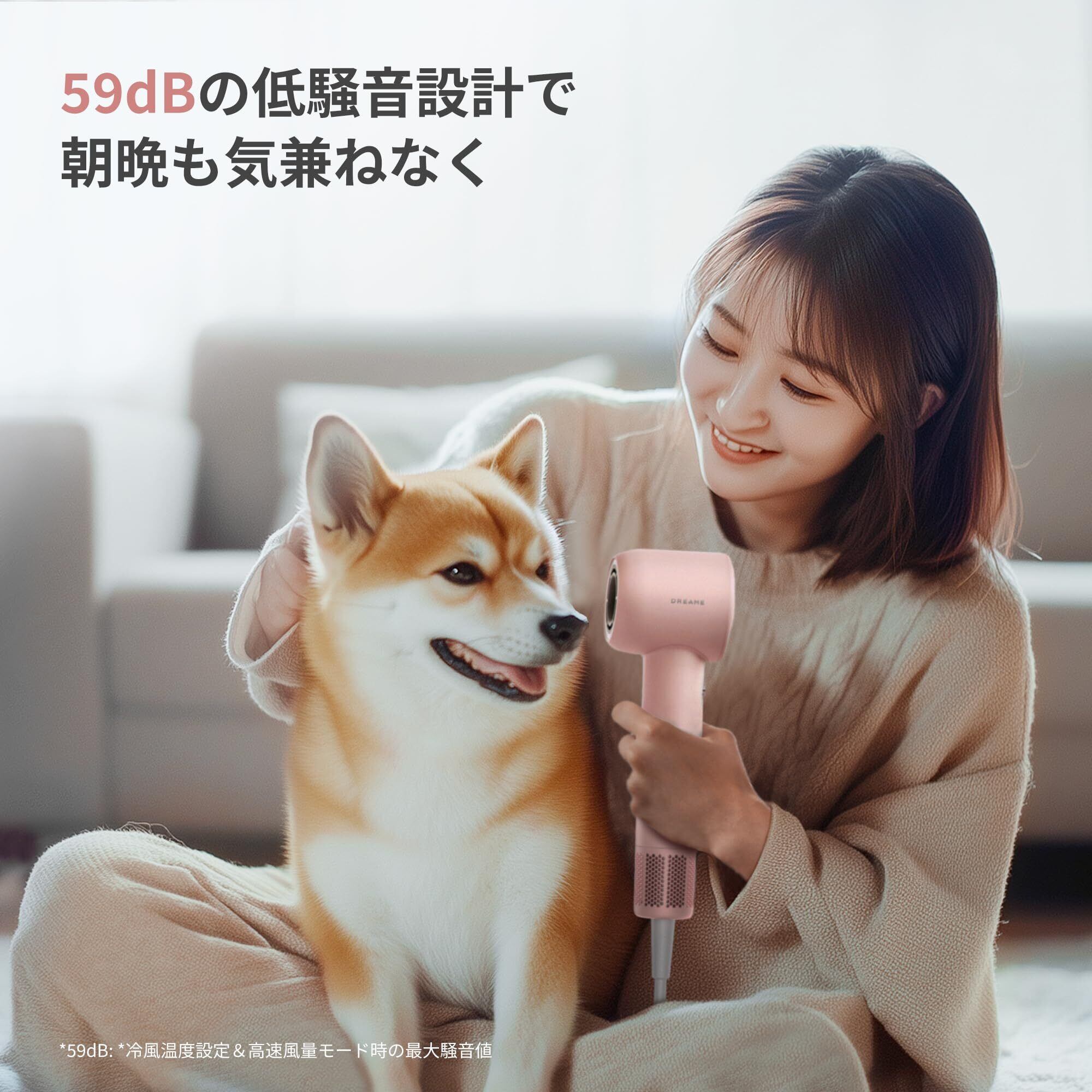 dreame (ドリーミー) Gleam 速乾ヘアドライヤー 1200W ブラシレス高速モーター 髪質改善 抜け毛対策 超軽量 静電気防止 温度制御システム(100回/秒検出) 2段階風速 4段階温度設定 冷風/熱風 59dB低騒音 スマート携帯ドライヤー ヘアケア 家庭用 旅行用 出張 コンパクト 高速乾燥 ヘアスタイリング プロ仕様(ピンク)