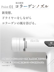 【コラーゲンノズル】独自開発!ノズルにコラーゲンフィルターを内蔵し、内部の構造がドライヤーの風を柔らかくして風と共にコラーゲンを放出します。