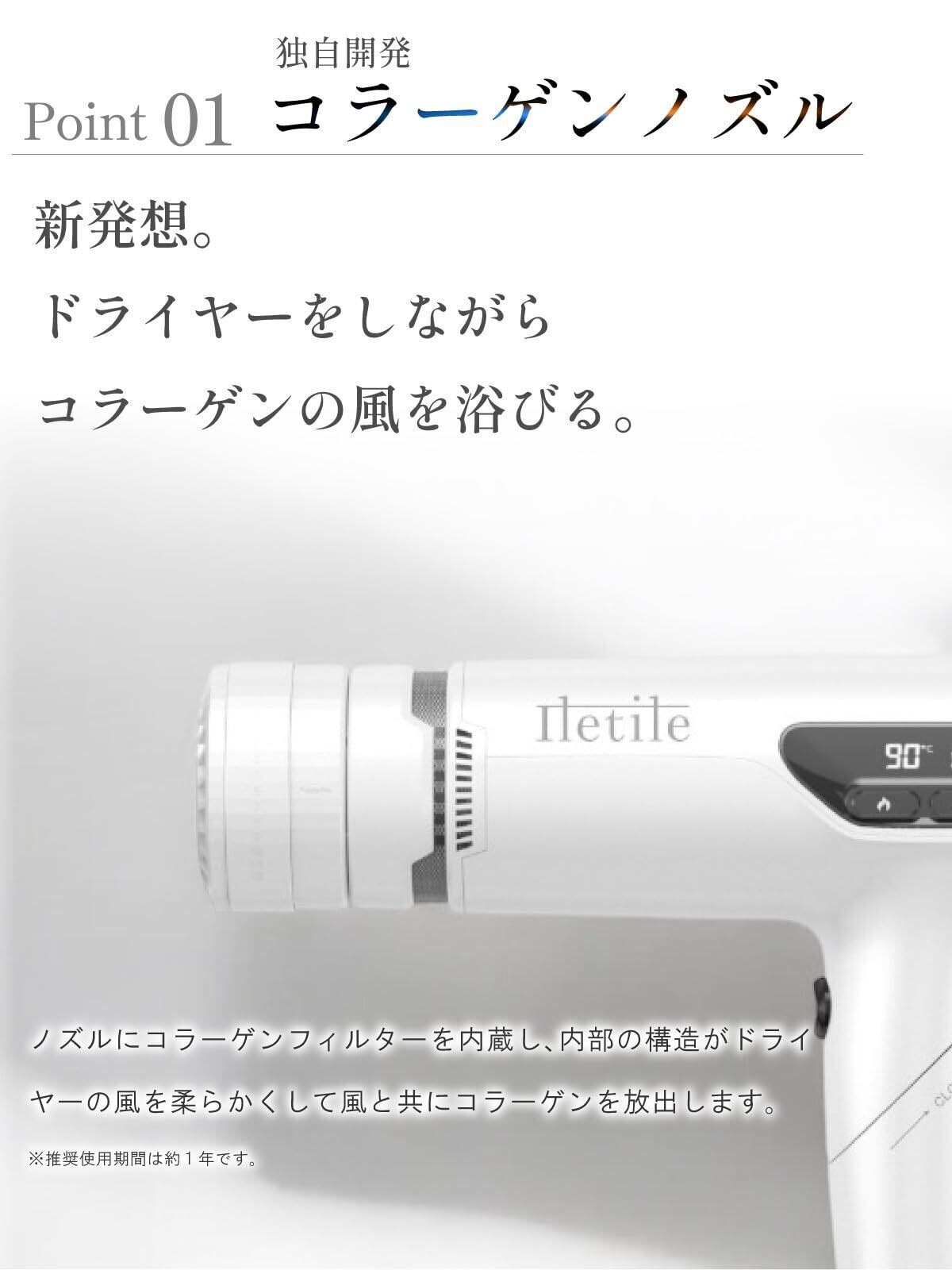 【髪をいたわる美容家電、速乾と潤いを両立!】Iletile コラーゲン ドライヤーは、美容師の知恵と技術を集結させた最新のヘアドライヤーです。髪を速やかに乾かすだけでなく、コラーゲンの力でしっかりと潤いを与え、健康的な美髪を実現します。