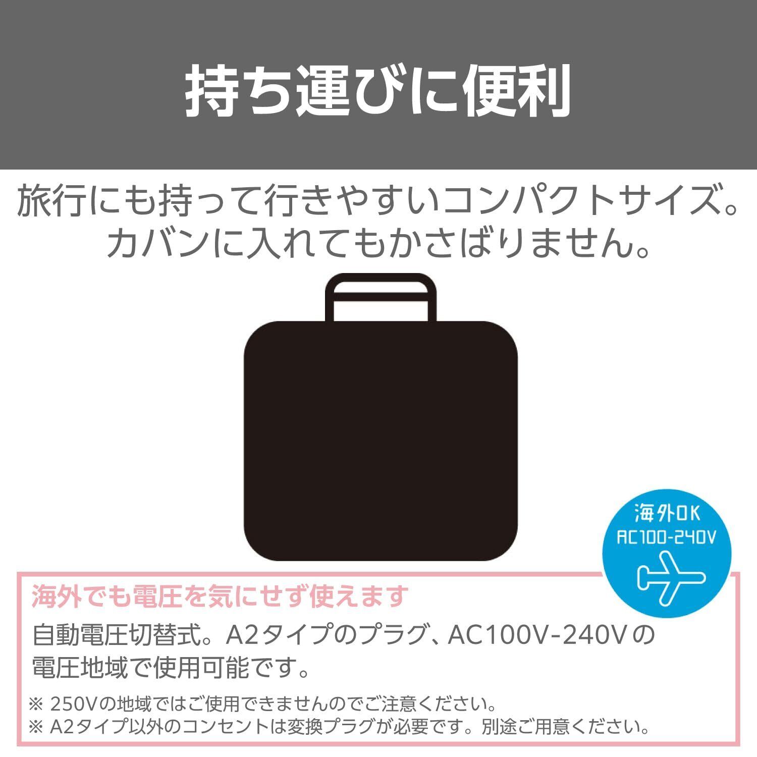 ■コンパクトな設計で持ち運びも楽々!■海外対応(100V-240V)のため、旅行や出張先でも安心してご使用いただけます。軽量でコンパクトなデザインは、バッグにすっぽり収まり、いつでもどこでもスタイリングを楽しめます。