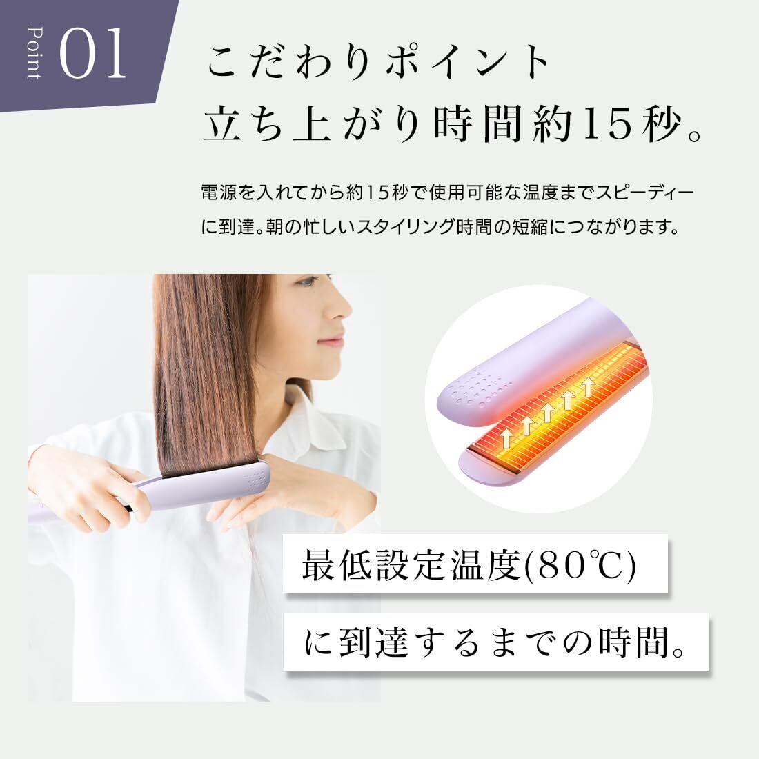 【最速の立ち上げ時間 &自動OFF機能】時間がない時でも約15秒で急速加熱で、使用開始可能となる。使いたいときにサッと使えるので便利。朝の忙しい時間に使う機会が多い方や、できるだけ短時間でクセを直したい方はこのヘアアイロンチェックしてみてください。電源を入れてから約60分後に自動的に電源が切れます。「電源切ったかな?」と心配で家に戻る必要はありません。