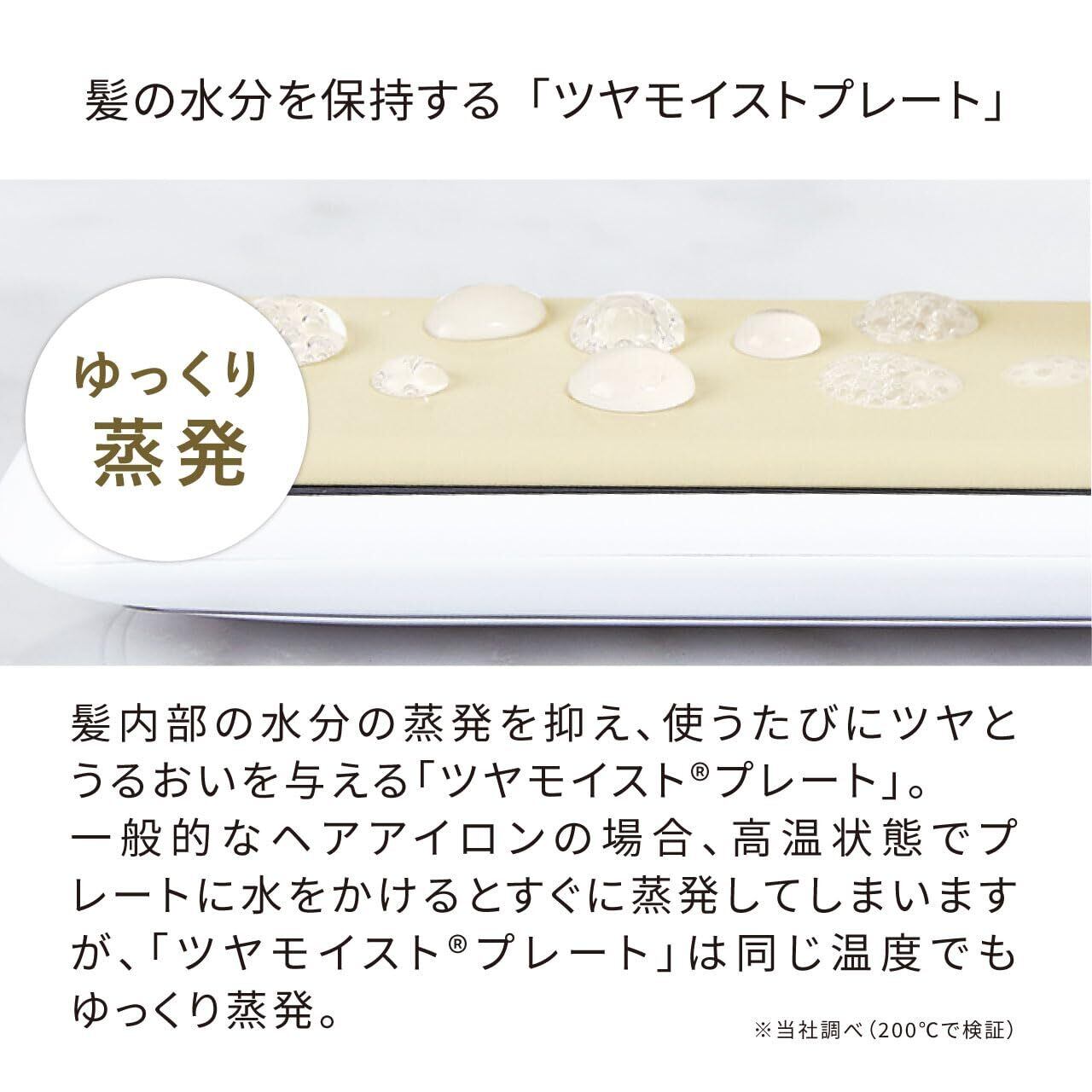 【髪の水分を保持する「ツヤモイストプレート」】髪内部の水分の蒸発を抑え、使うたびにツヤとうるおいを与える「ツヤモイストプレート」。一般的なヘアアイロンの場合、高温状態でプレートに水をかけると「ジュッ」と音を立ててすぐに蒸発してしまいますが、「ツヤモイストプレート」は同じ温度でもゆっくりジワジワ蒸発。髪の水分をキープし、傷みやパサつきを軽減するため、デイリーに使いやすい。 ※当社調べ(200℃で検証)