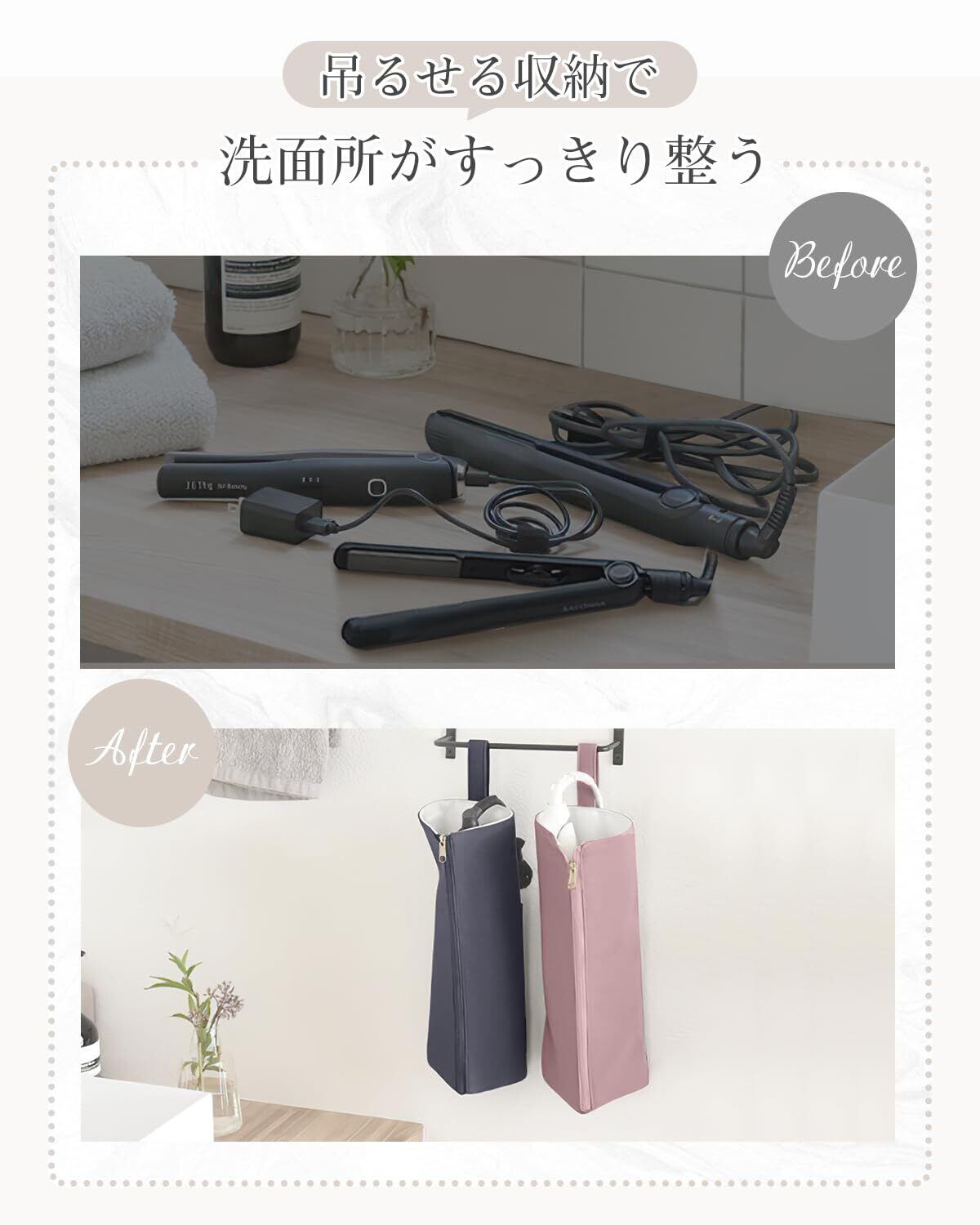 【吊るして収納可能】壁面のタオルハンガーや収納ラックに吊るしてご使用いただけます。ポーチ内でもアイロンホルダーのようにサッと取り出せます。洗面台に放置する心配もなく、ポーチで保管すればお子様が触れる心配もありません。