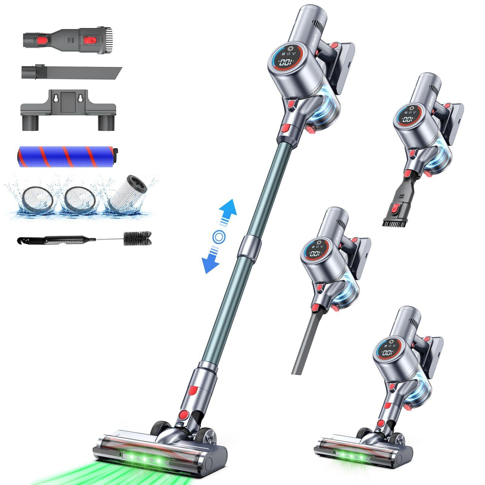 【視認性抜群のグリーンLEDライト!】Bivark掃除機は、特別に設計されたグリーンLEDライトを搭載しており、普段見逃しやすいホコリをしっかり照らします。暗い場所でも安心して掃除ができ、効率的な作業をサポートします。
