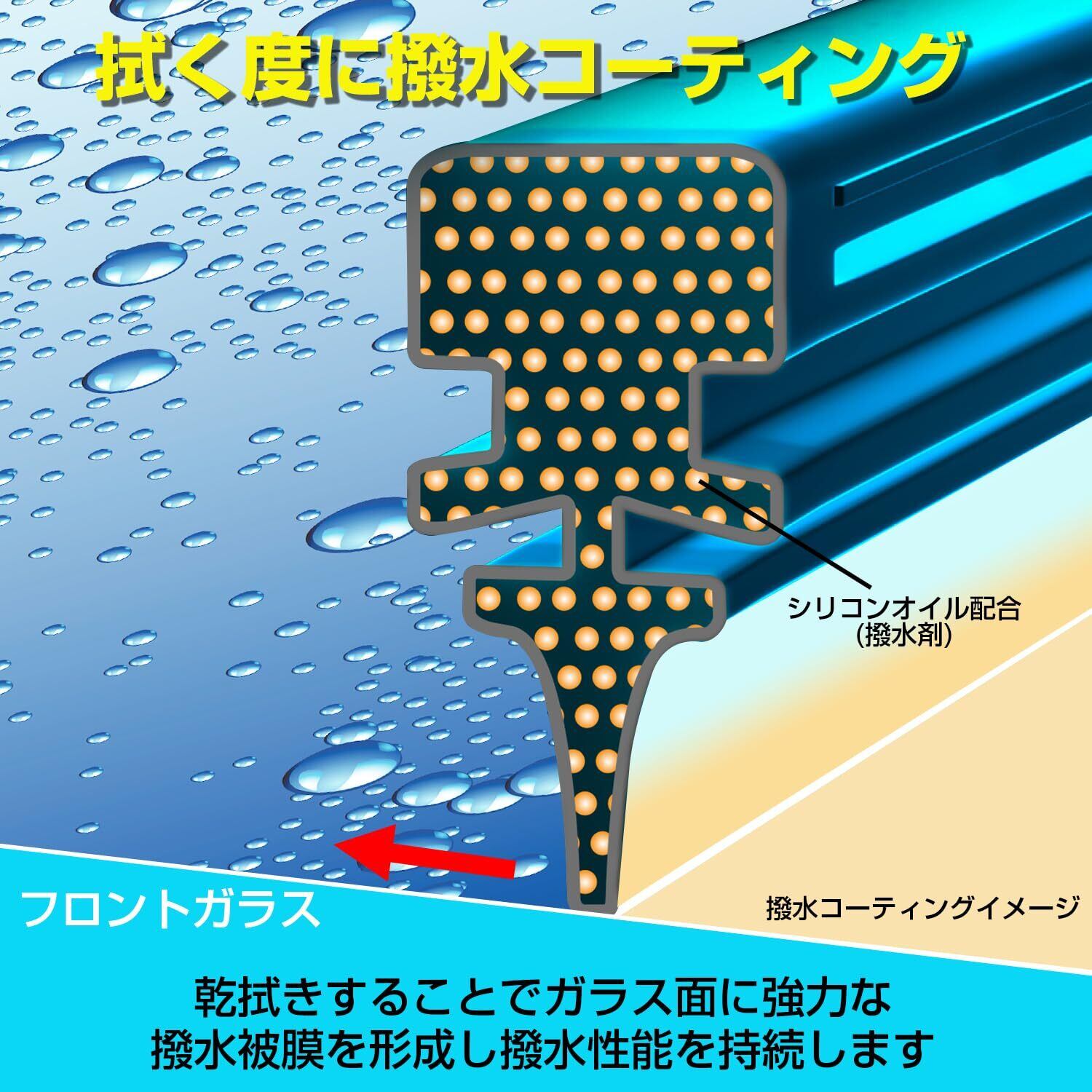 ■驚異の超撥水性能!■このワイパーの特長は、撥水シリコンゴムの採用です。特殊コーティングにより、雨水をしっかり弾き、視界をクリアに保つ力を発揮します。雨の日でも安心して運転でき、あなたの安全をしっかり守ります。