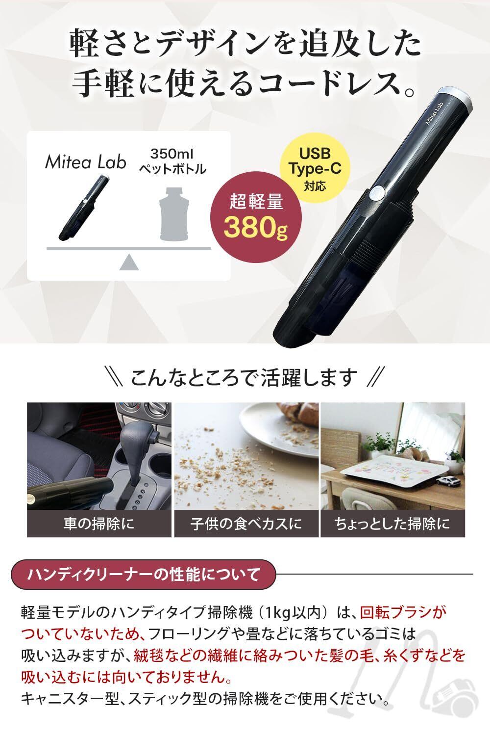■驚異的な吸引力で効率的なお掃除!■最大吸引力は7000Paを実現!Mitea Lab独自の高性能モーターによって、微細なホコリや食べくず、ペットの毛をしっかり吸引します。車内の隙間や家具の裏など、届きにくい場所もこれ一台で簡単に掃除可能です。