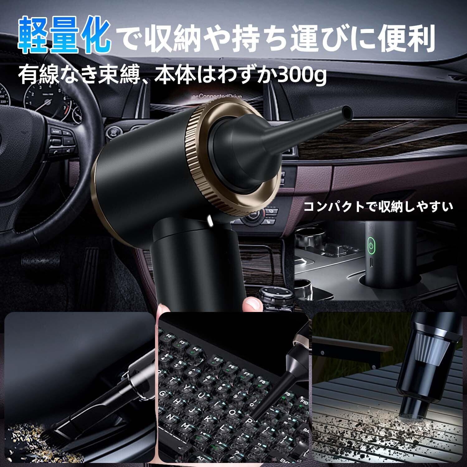 ハンディクリーナー 掃除機 ハンディ 車用掃除機 コードレス 業界最強37000PA 5in1多機能 独立LEDライト付き (吸引/エアーポンプ/排気/吹き飛び/照明) Type-C充電 超軽量300g 乾湿両用 大容量 車内/家庭/業務用 日本語説明書付き
