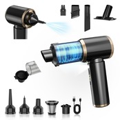 【多機能性であなたの掃除をサポート!】このハンディクリーナーは、強力な吸引力37000PAを誇り、家庭から車内まで幅広く活躍します。吸引だけでなく、エアーポンプや排気、吹き飛び、さらには照明機能まで搭載した5in1の便利なアイテムです。