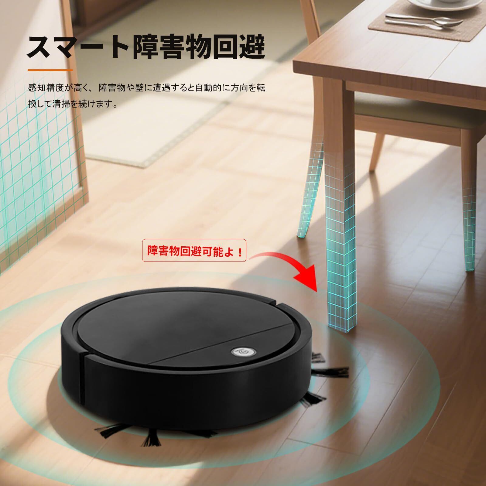 ロボット掃除機 【6.5cm超薄型 強力吸引】 3-in-1水拭き掃除 お掃除ロボット 小型 自動障害物回避 静音設計 髪の毛 ペット毛対策 落下防止機能 モップ付き USB充電式 フローリング/畳/カーペット