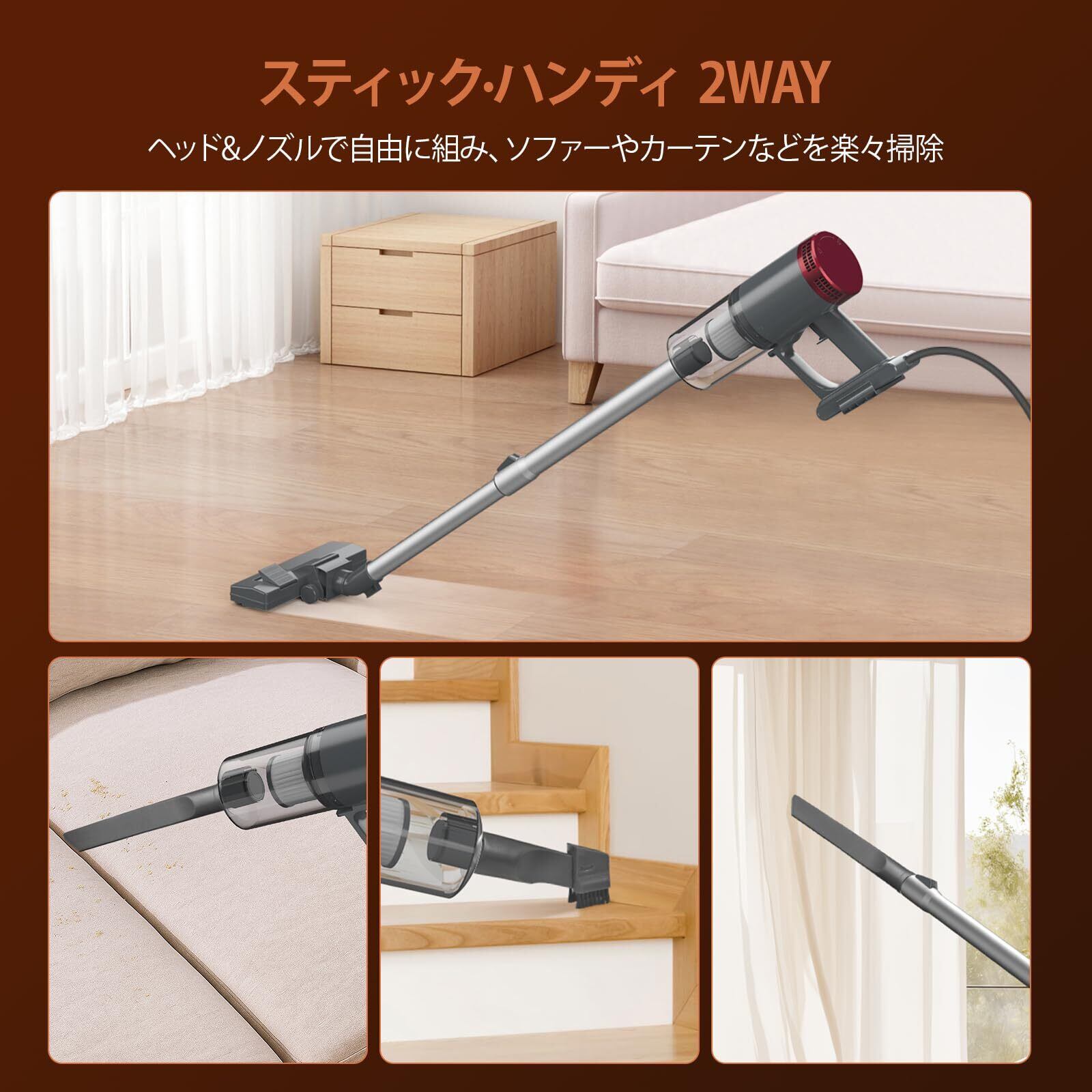 ■軽量で使いやすい2WAY設計!■本製品はスティック掃除機とハンディクリーナーの2WAY仕様で、どんなシチュエーションにも対応。軽量設計(約2.2kg)なので、女性やお年寄りでも手軽に扱えるのが魅力です。電源コードは4Mと十分な長さがあり、家中を楽に移動しながら掃除が可能です。