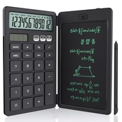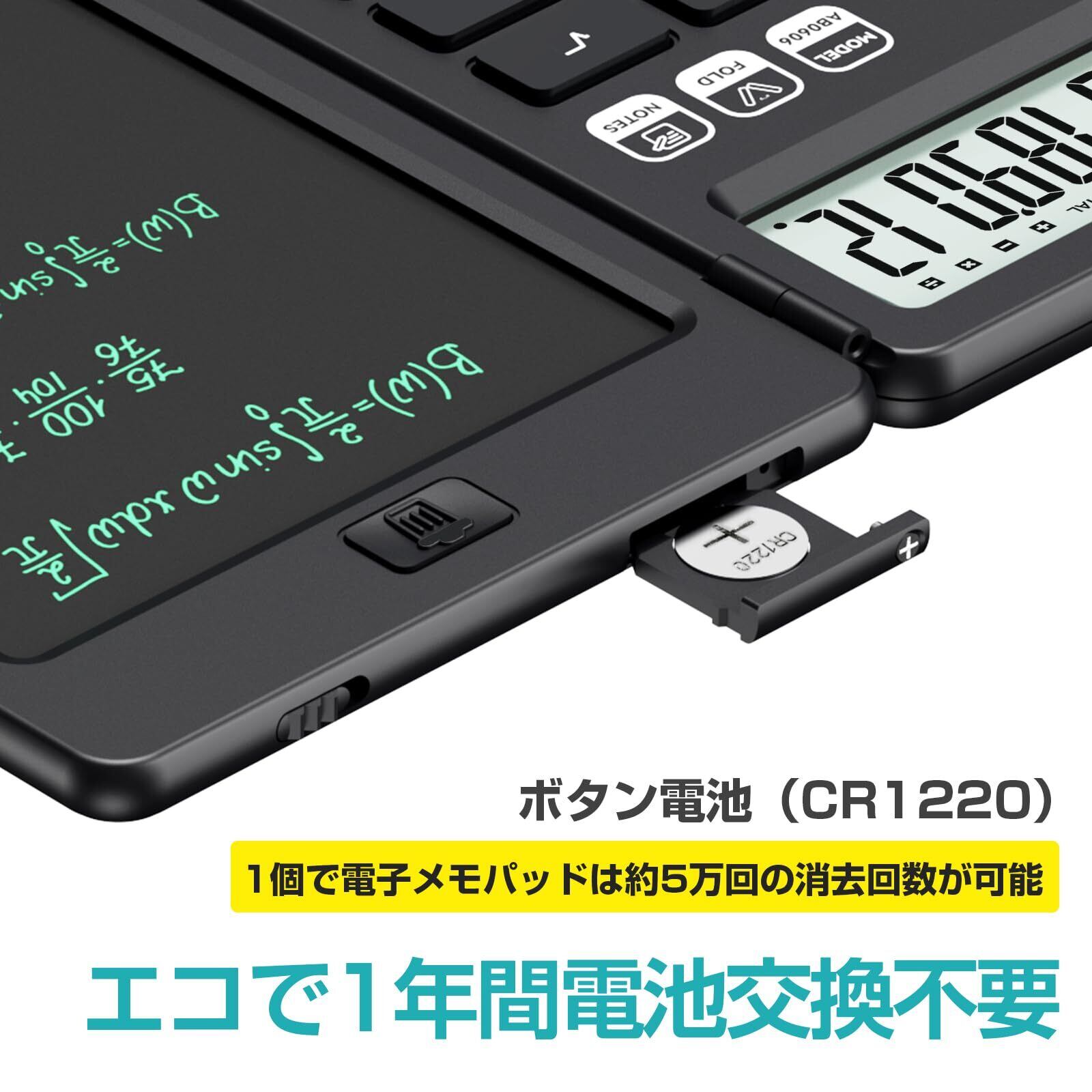 NEWYES 電卓付き電子メモパッド ソーラー充電可 折りたたみ式 ワンタッチ消去 多機能 計算機 デジタルペーパー 電卓 12桁 使いやすい 小型 6インチ コンパクト デジタル メモ帳 職場 家庭 仕事用 黒