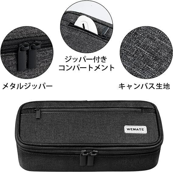 ◆WEMATEペンケース 大容量 筆箱横開き 2層 シンプル 多機能 おしゃれ-ジッパー ペンホルダー付き 強力な分類と収納力 ガジェットポーチ 収納ポーチ 旅行 出張 女の子、男の子、大人、小学生、高校生、大学生用-ブラック◆