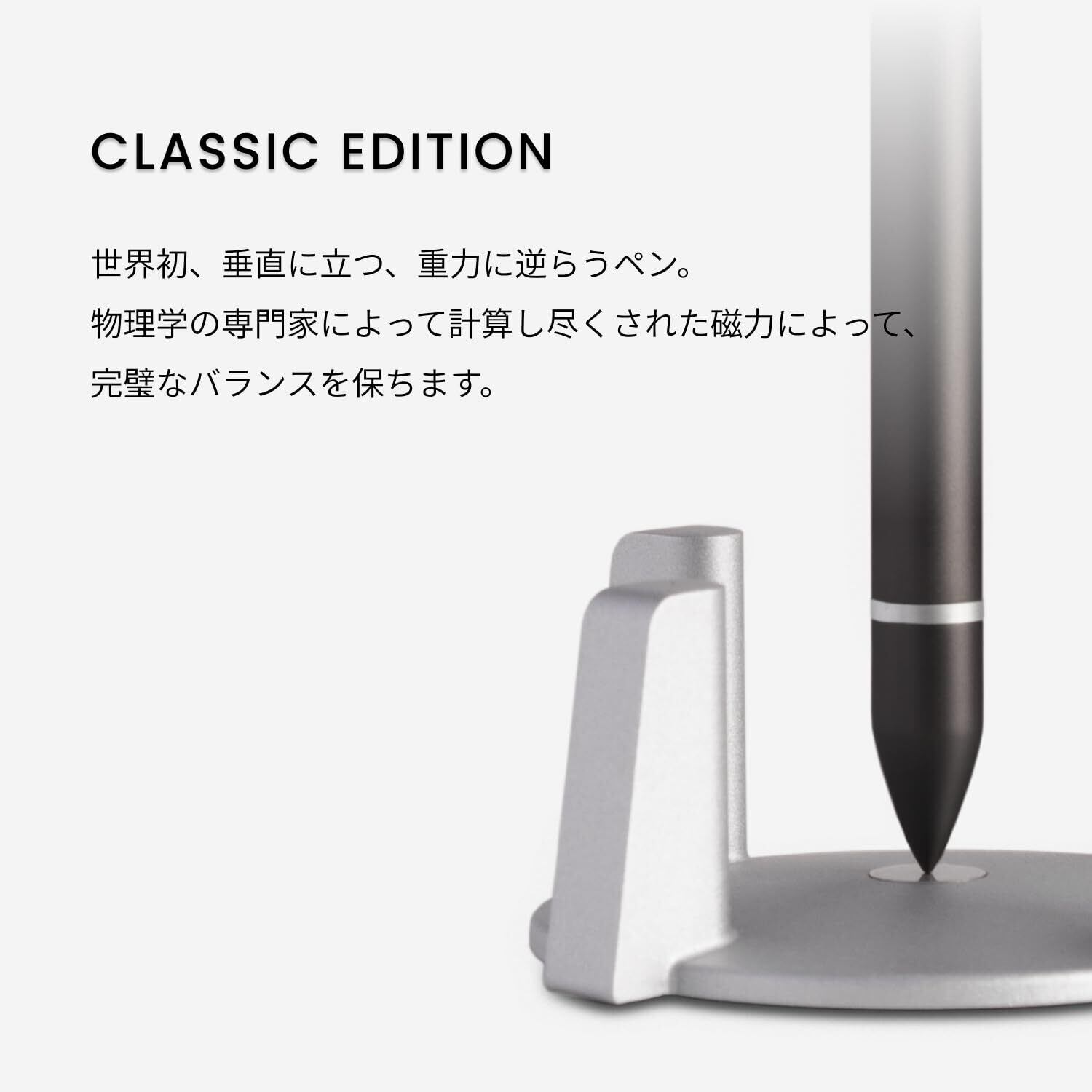 プレミアムなモダンデザイン:電源不要!ペンと台座はすべて金属と磁石で作られており、生涯使える耐久性を実現。高級感あふれるこのペンは、最大100年間ホバリングし続けるよう設計されています。
