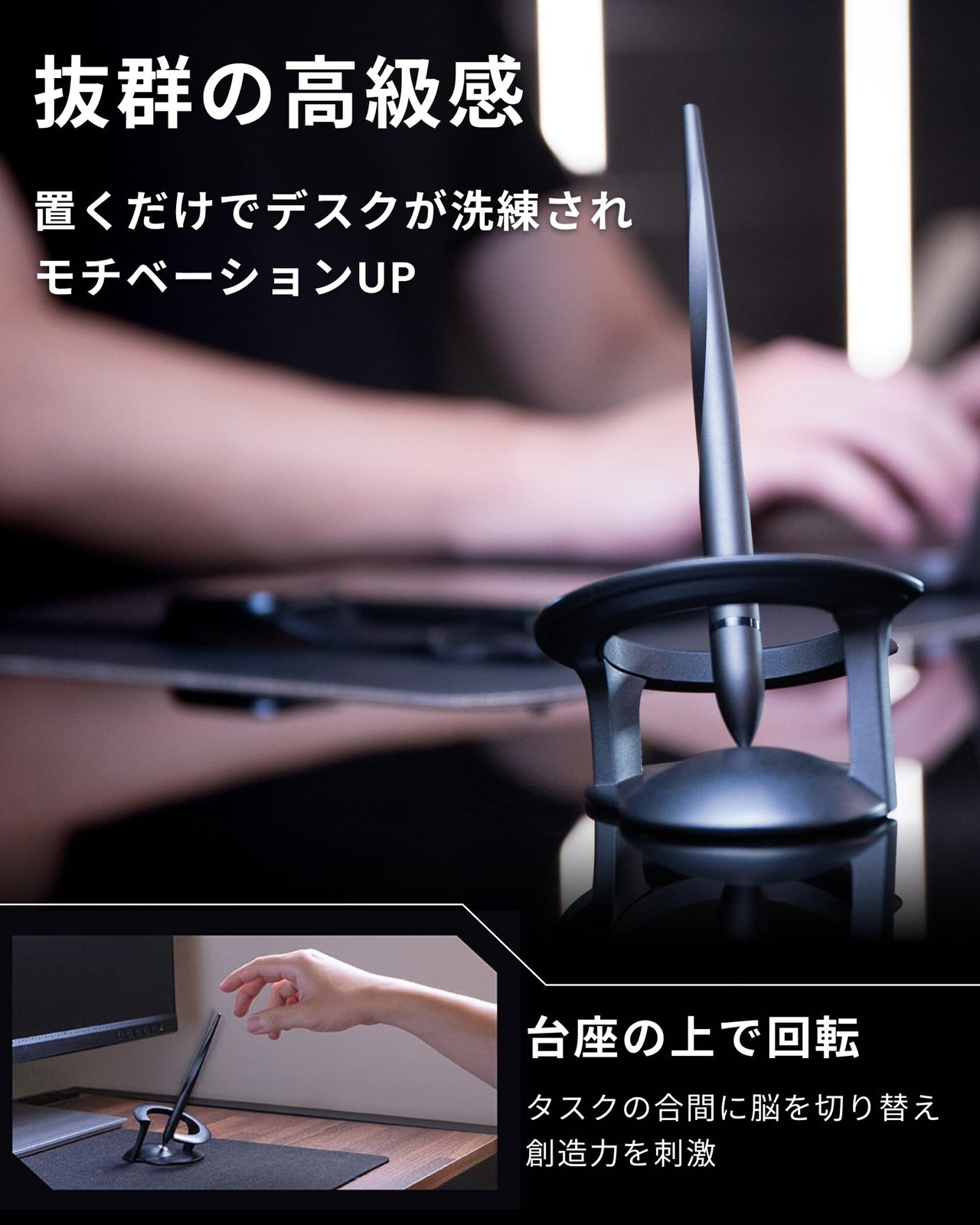 クリエイティブな機能:磁力によりペンが台座の上で回転。集中力や創造力を高めるフィジェットツールとしても活躍します。