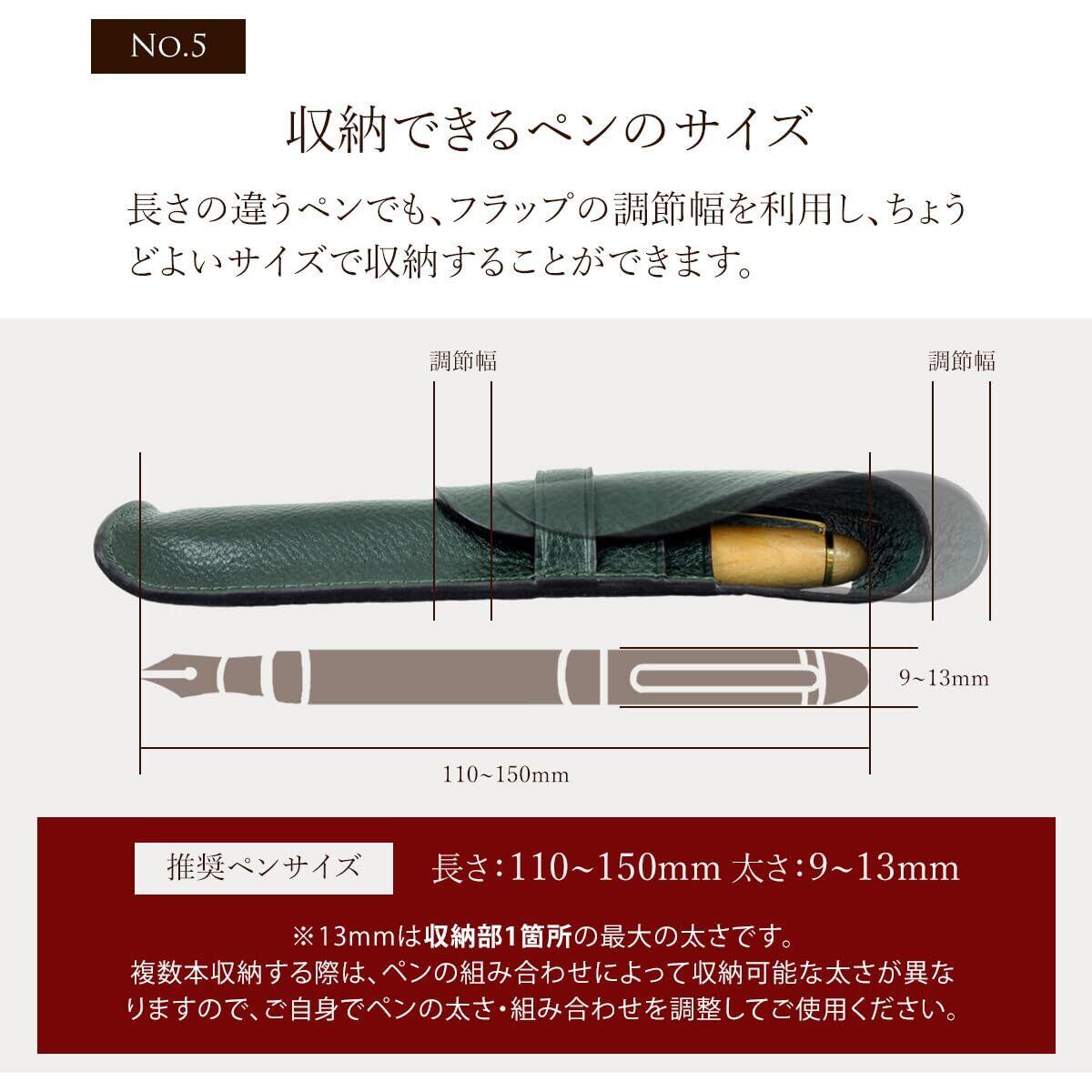 【大切な万年筆のために】 あの人からプレゼントしてもらったペン、お気に入りの一本。そんな特別な想いの詰まったペンには、特別なペンケースを。熟練された職人の技術で細部までこだわり製作され、縫製、折り、塗り、どれを取っても一級品の仕上がりです。 ※推奨ペンサイズは収納部1箇所の最大の太さとなります。複数収納する際にはペンの太さによって組み合わせの調整を宜しくお願い致します。