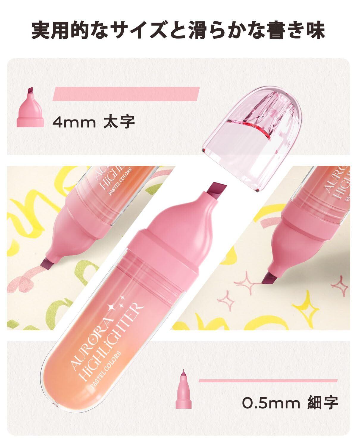 幅広い用途: 4mmの太い線と0.5mmの細い線が描けるため、ノート取り、ハイライト、手帳作りやイラスト描きなど、さまざまな場面で活用できます。長時間の筆記や描画にも快適な使用感を提供します