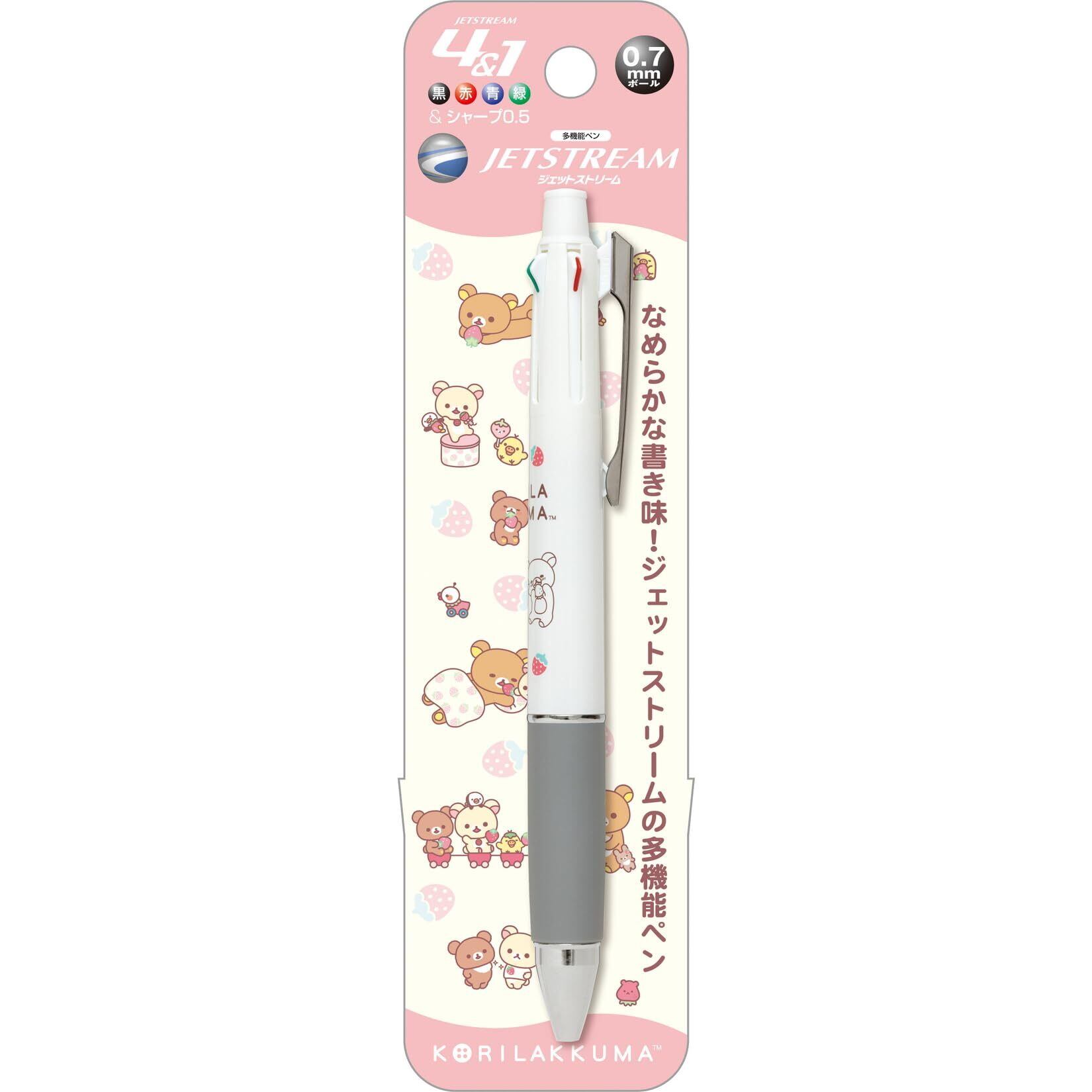 なめらかな書き味!リラックマのジェットストリーム多機能ペンです0.7mmの黒、赤、青、緑のボールペンと0.5mmのシャープペン。