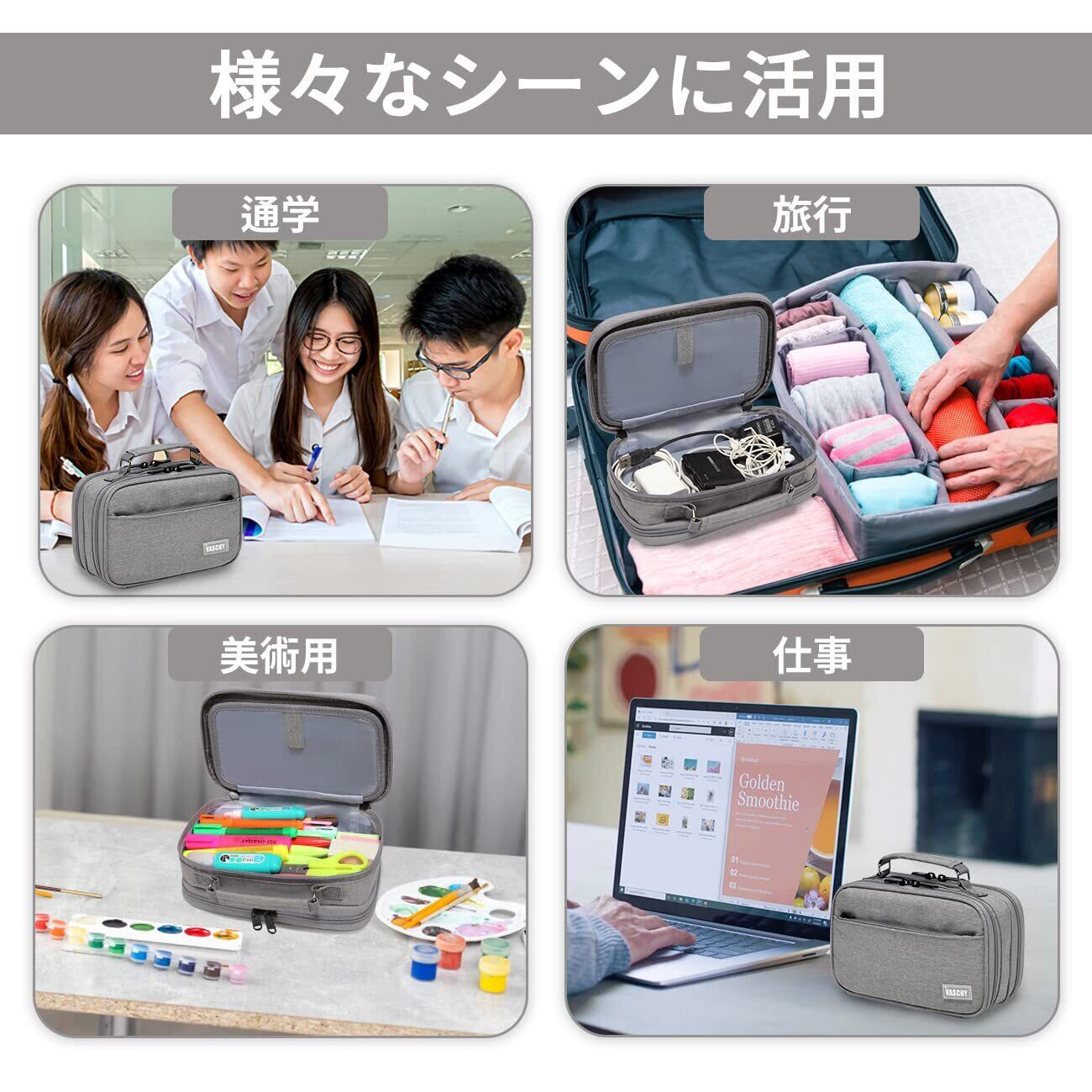 ◆Vaschy 二階建て ペンケース 大容量 多機能 筆箱 学生用 社会人用 ペンポーチ 内ポケット 持ち手付き グレー◆