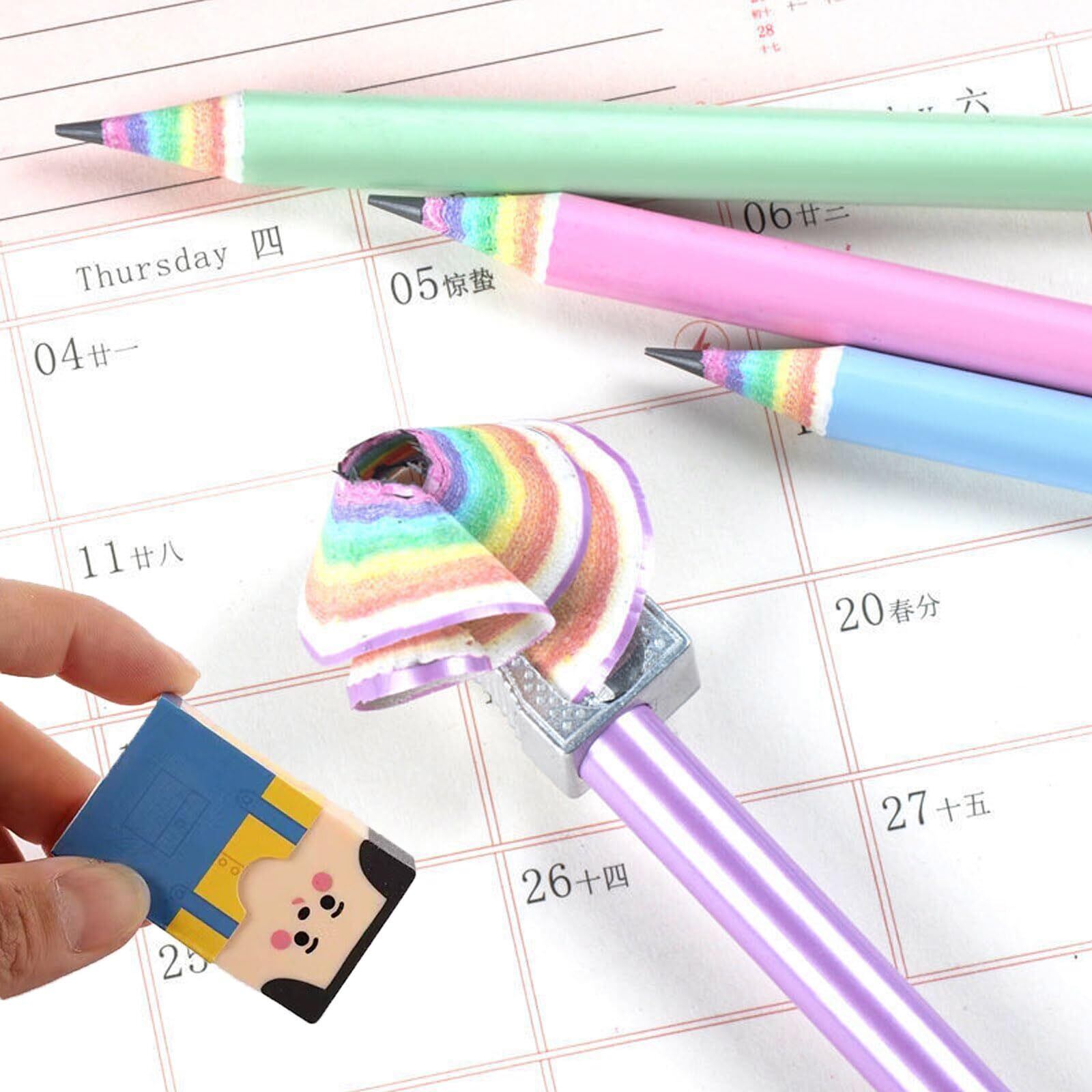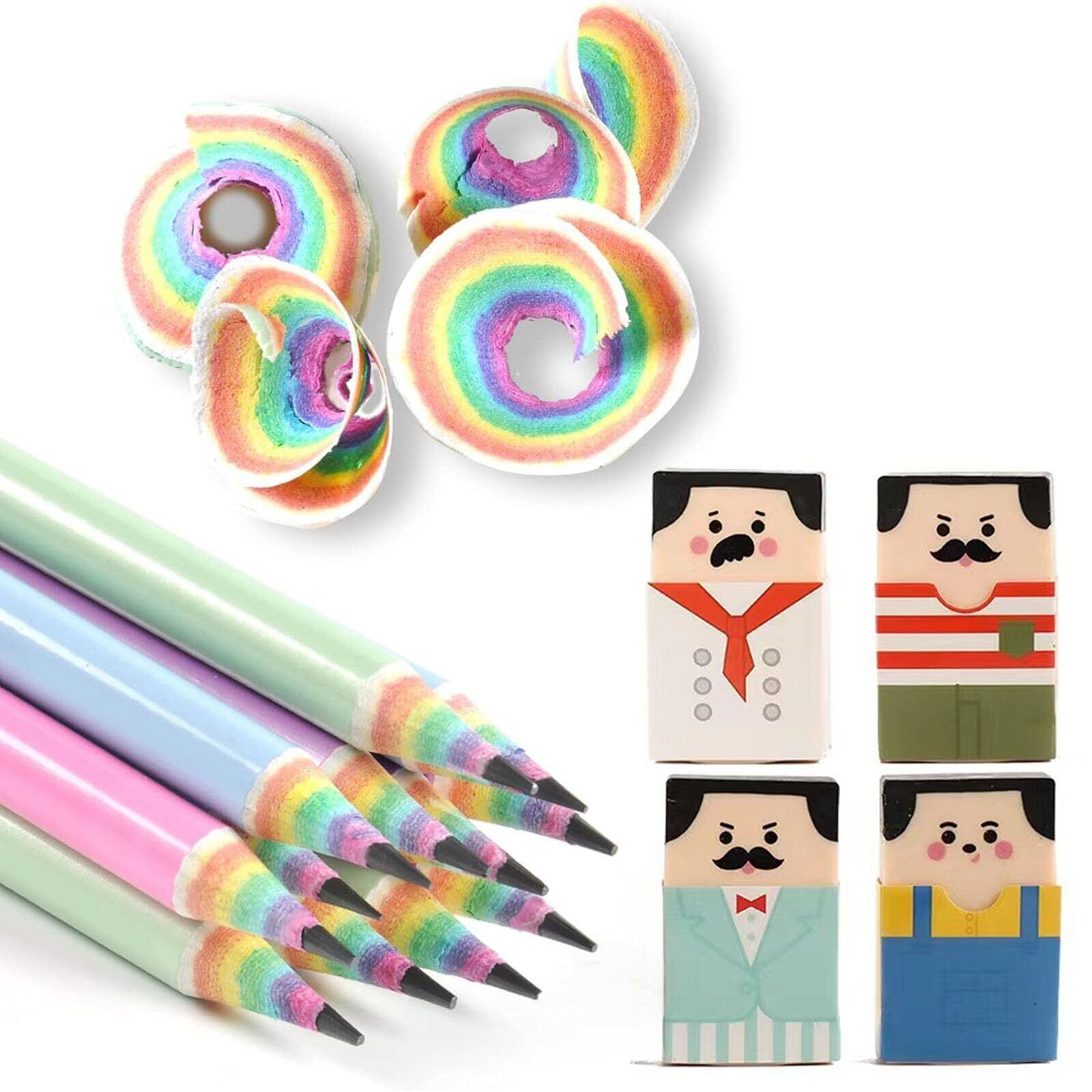 【面白い文房具セット】小学生女子が喜ぶプレゼント 文房具セットでかわいいです。削っても削ってもレインボー、お友達にプレゼントしたり、小学生には楽しい鉛筆のようです。小学生 に 人気 の 文房具 消しゴムは、 可愛いデザインの可愛いスタイリングの消しゴムで子供はテンションアップ。
