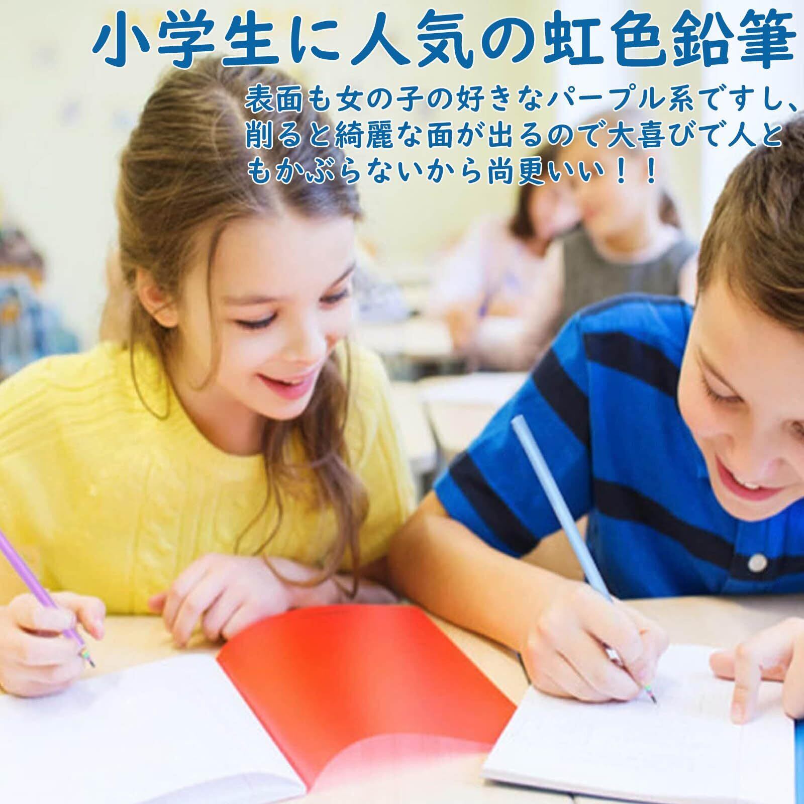 【12本かわいい虹色鉛筆】 小学生女子に大人気でしたカラフルでとても可愛い鉛筆です。削ると綺麗な虹色が出来て楽しい鉛筆です。表面も女の子の好きなパープル系ですし、削ると綺麗な面が出るので大喜びで人ともかぶらないから尚更いい!!子供のプレゼント用。