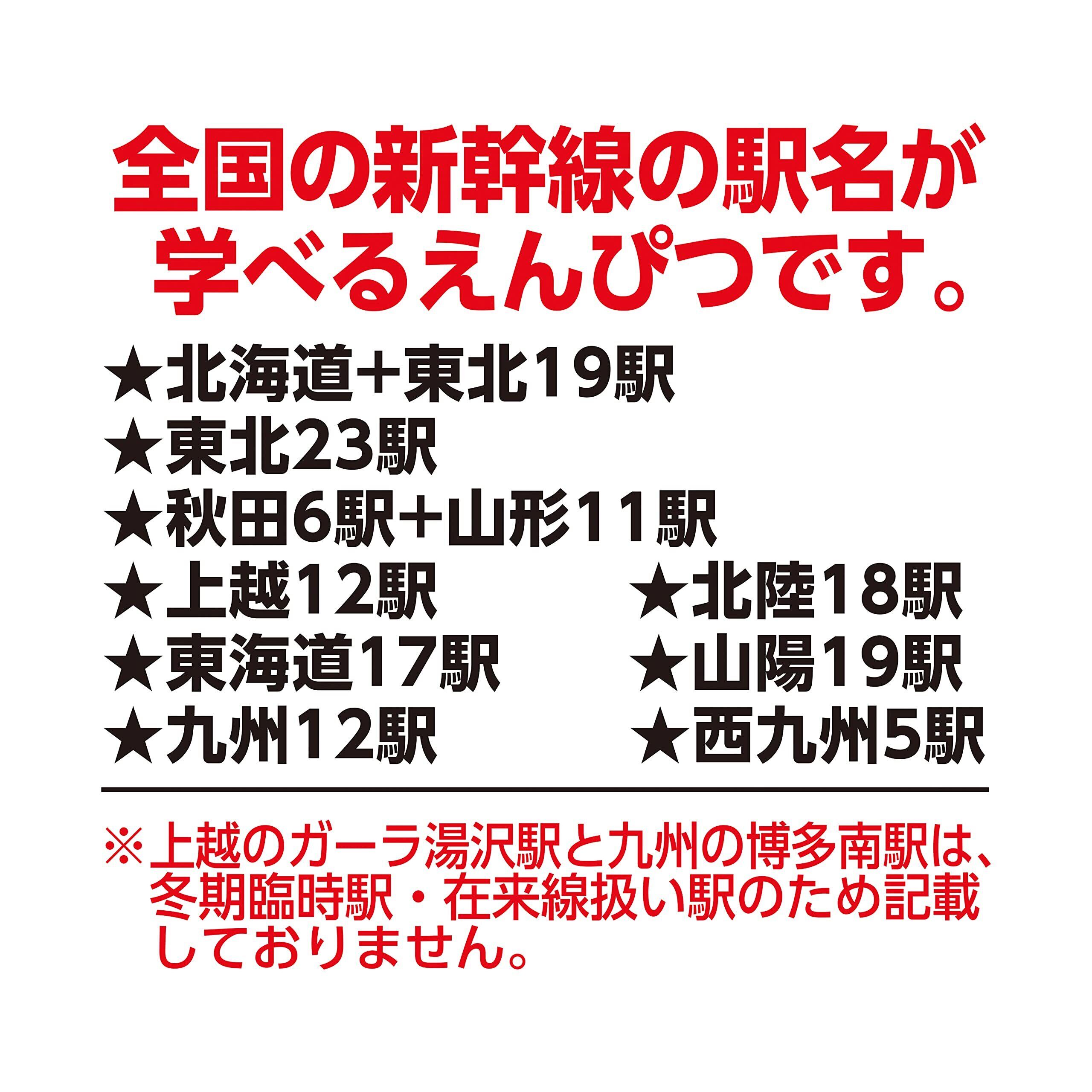 全国の新幹線の駅名が学べる鉛筆<br>本体は持ちやすい三角軸<br>車両イラスト、駅名、名前欄付き<br>全国の路線図図表付き<br>12本入
