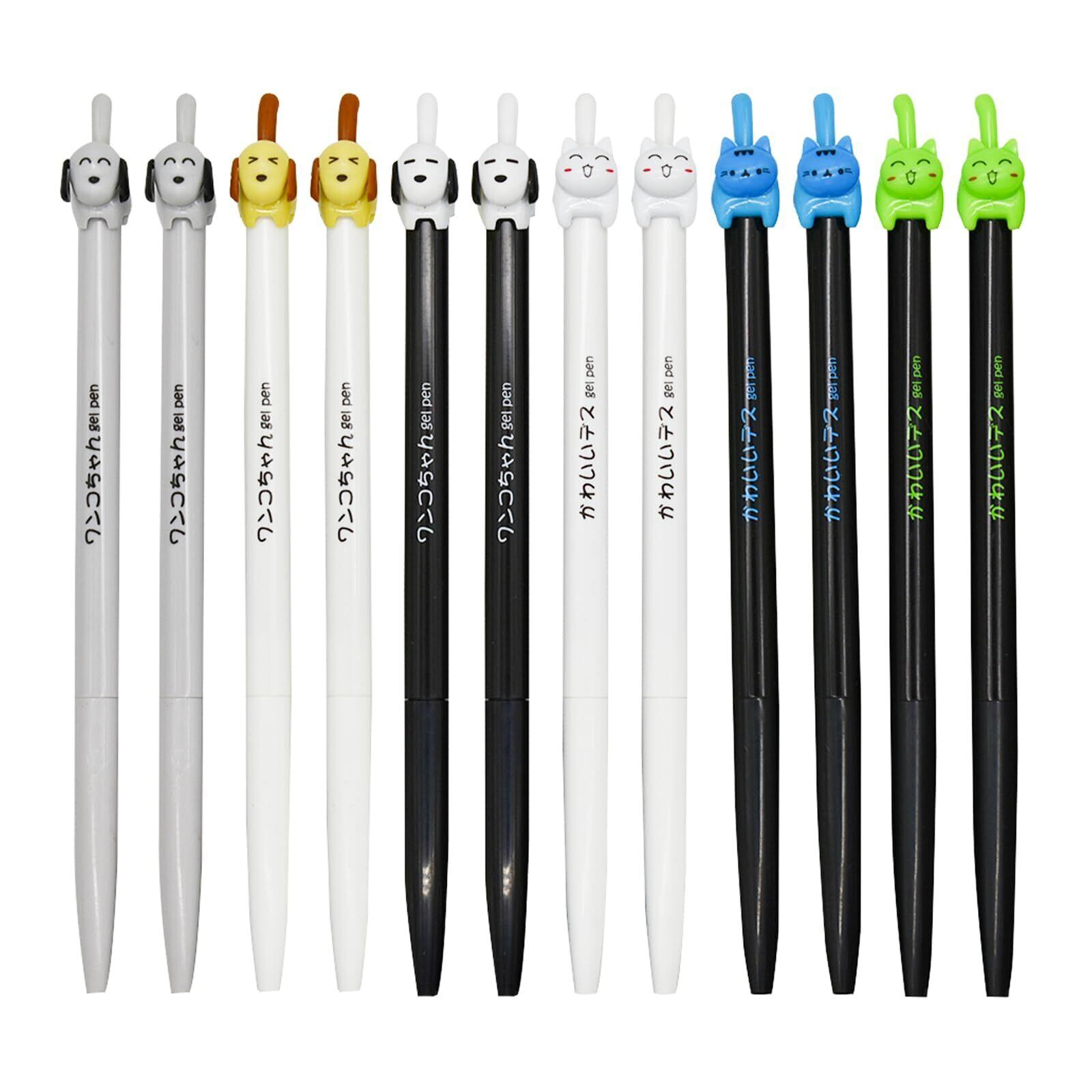 Maydahui おしゃれ 猫 犬 ボールペン 0.5mm 黑 12本 かわいい カラフル 動物 ジェルボールペン かきやすい 可愛い 文房具 オフィス パーティー用品 プレゼント