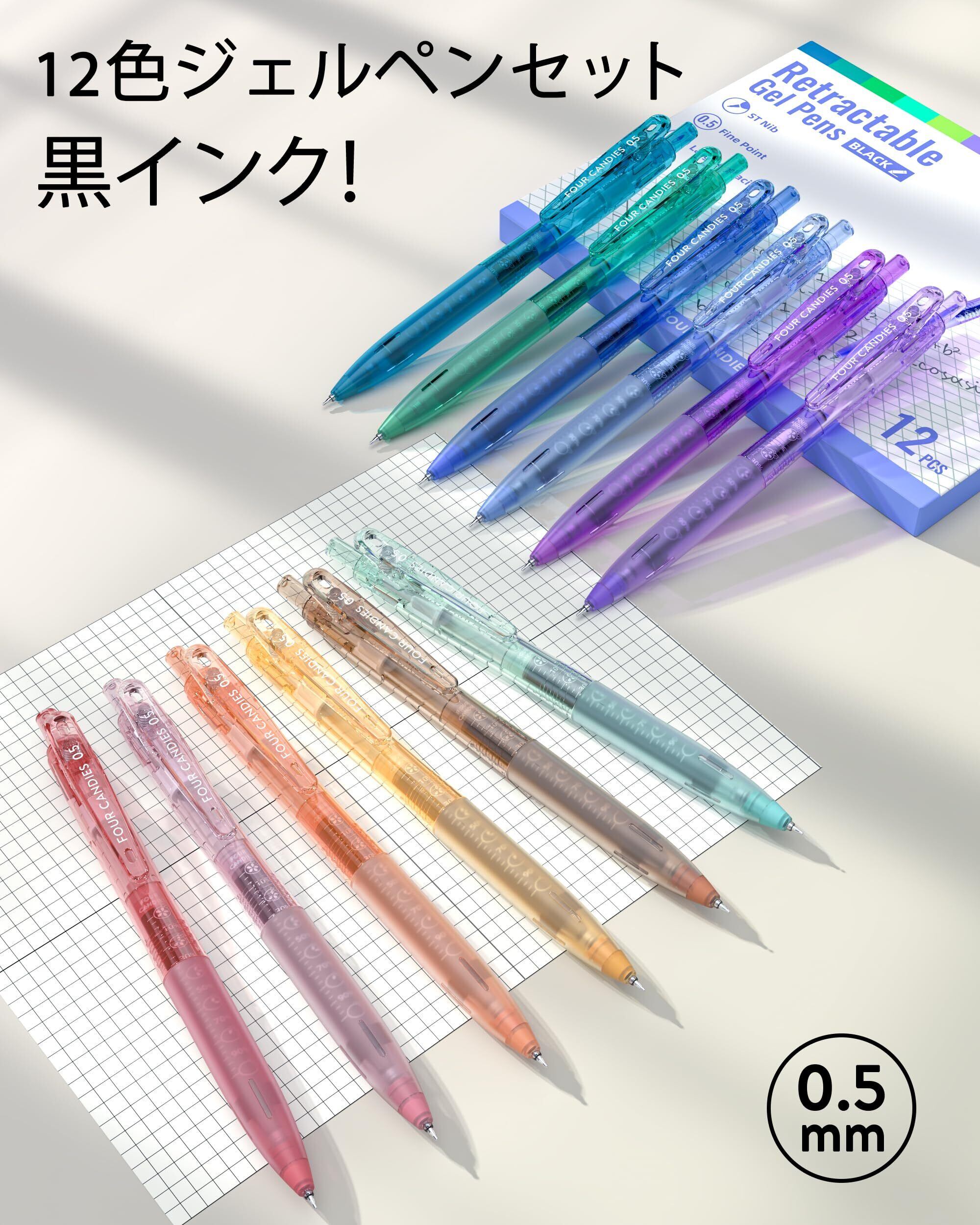 Four Candies パステル ジェルボールペン 0.5mm ゲルインキボールペン 12本セット ノック式 おしゃれ 書きやすい かわいい 文房具 中学生 ブラックインク
