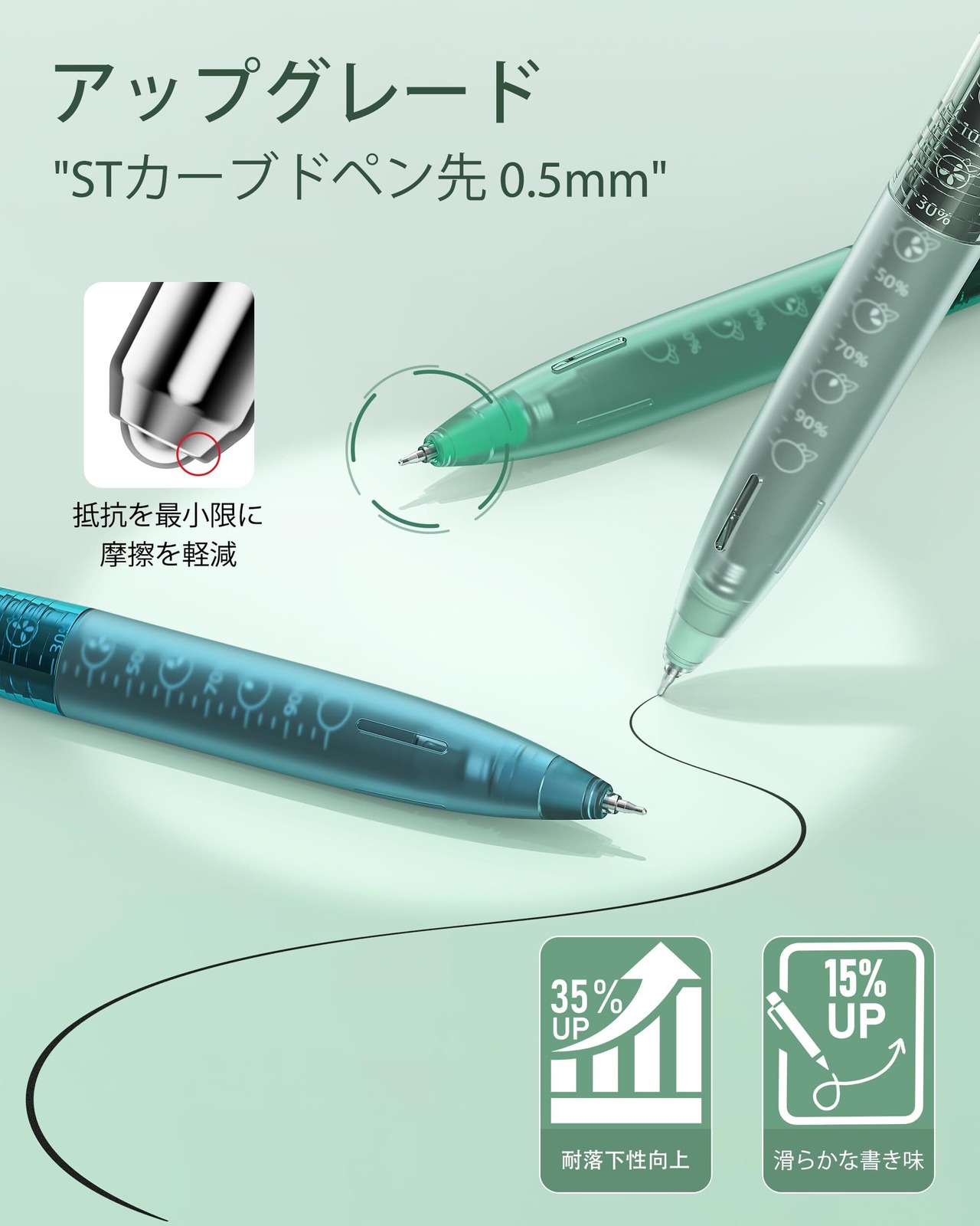インク消費が一目でわかる:ペンのリフィルに0%から100%の目盛りが付いており、インクレベルを簡単に把握でき、インク切れの突然の状況を防ぎます。大容量のインクが、ストレスフリーな書き込み体験を提供し、このツールの信頼性を高めます。