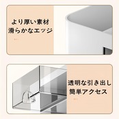 デスクオーガナイザーは、高品質なHIPS+PS素材を使用しており、頑丈で長期間使用しても変形しにくく、汚れても簡単に洗浄可能で、耐腐食性に優れています。6大分区設計を採用し、分類して収納でき、多格分区で整理整頓が簡単です。2つのスムーズな引き出しが付いており、透明設計で中身が一目瞭然で、抽拉がスムーズで使いやすく、防塵効果も抜群です。アイテムの高さに制限がなく、必要なものをすぐに見つけられる便利さが特徴です。デスク周りの文房具や化粧品、リモコンなど、多様なシーンで活用可能で、おしゃれで便利な多機能オーガナイザーです。
