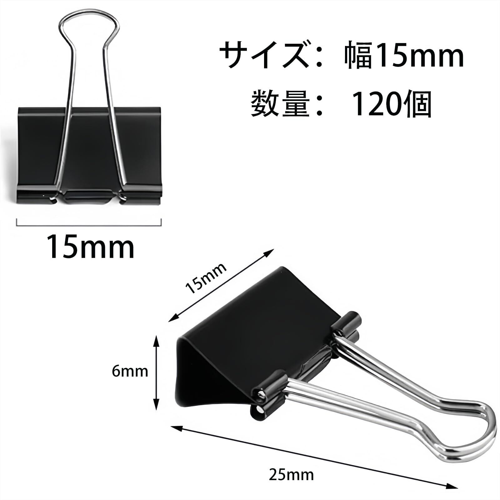 ダブルクリップ 中 15mm 120個入り 黒 金属製 ペーパークリップ 書類整理 オフィス 家庭用 業務用 文房具 お徳用 黒 袋止め (15 mm 120個)