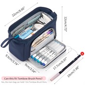 ANGOOBABY 大容量 ペンケース 男の子 高校生 女子 筆箱 おしゃれ 小学生 中学生 かわいい 筆入れ 小物収納 サラリーマン ビジネス 社会人用 ネービーブルー
