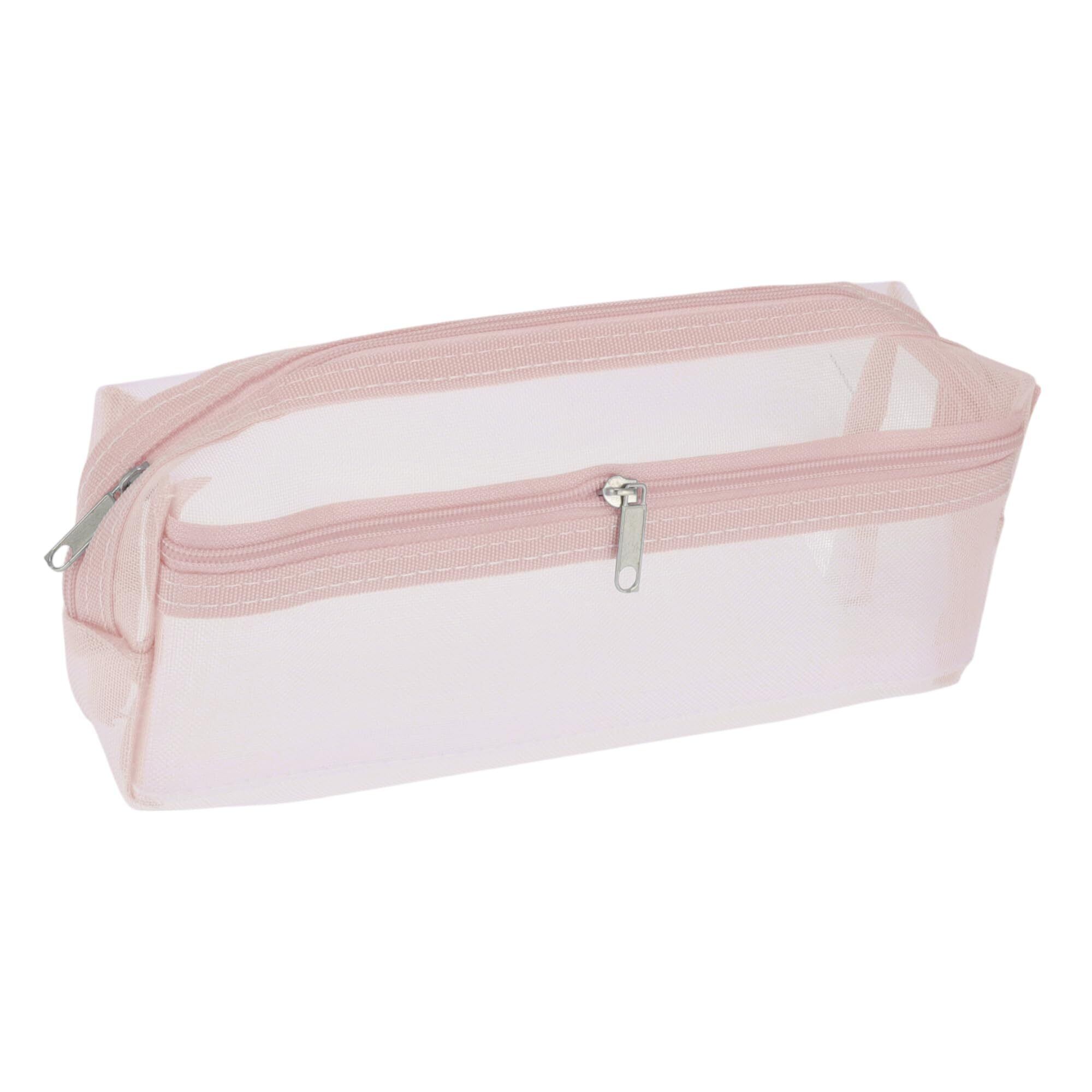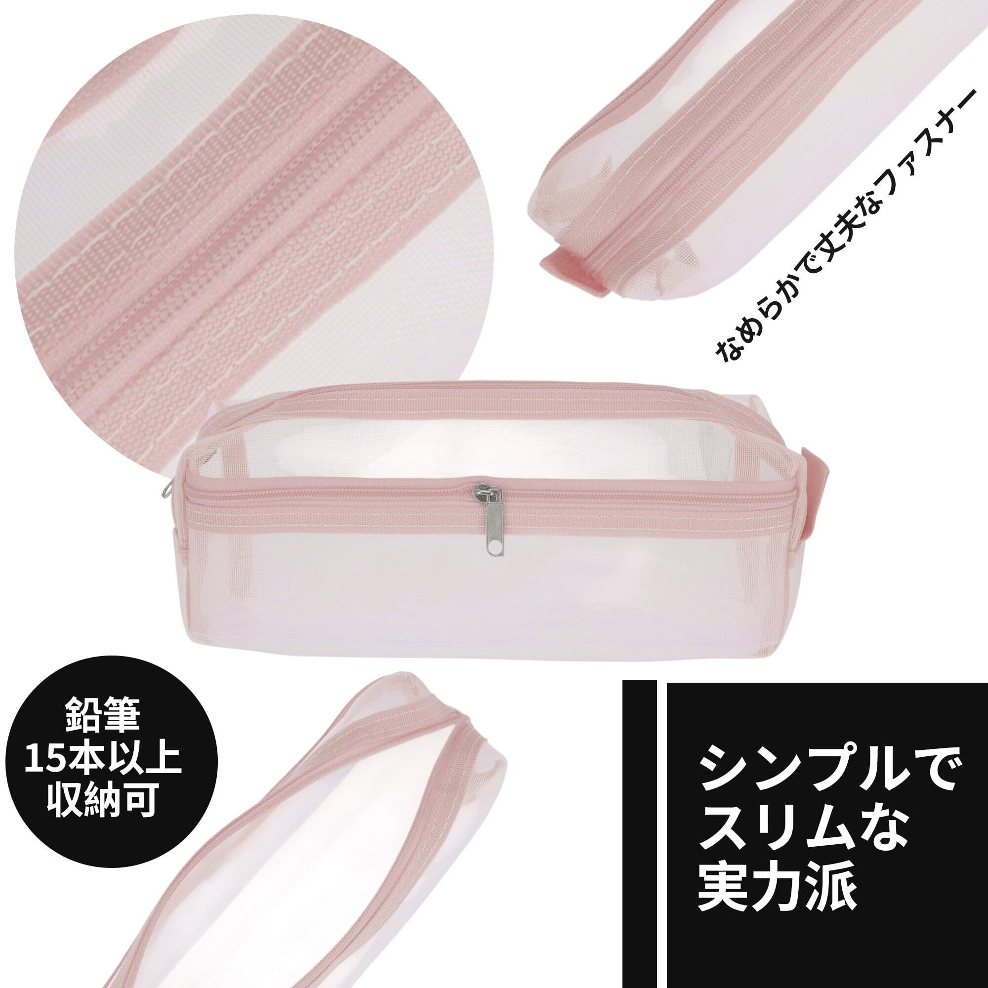 GLIDESMOOTH ペンケース 筆箱 透明 ペンバッグ メッシュポーチ 大容量 多機能 文房具収納 収納バッグ オフィス用品 1個 ピンク 長方形 スタイル3