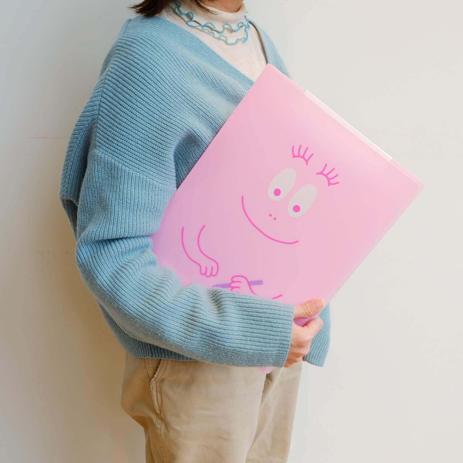 バーバパパのクリップボード。マグネットではさんで、簡単に書類を固定することができます。表紙の裏面には、A4サイズの書類が入るクリアポケットが付いています。