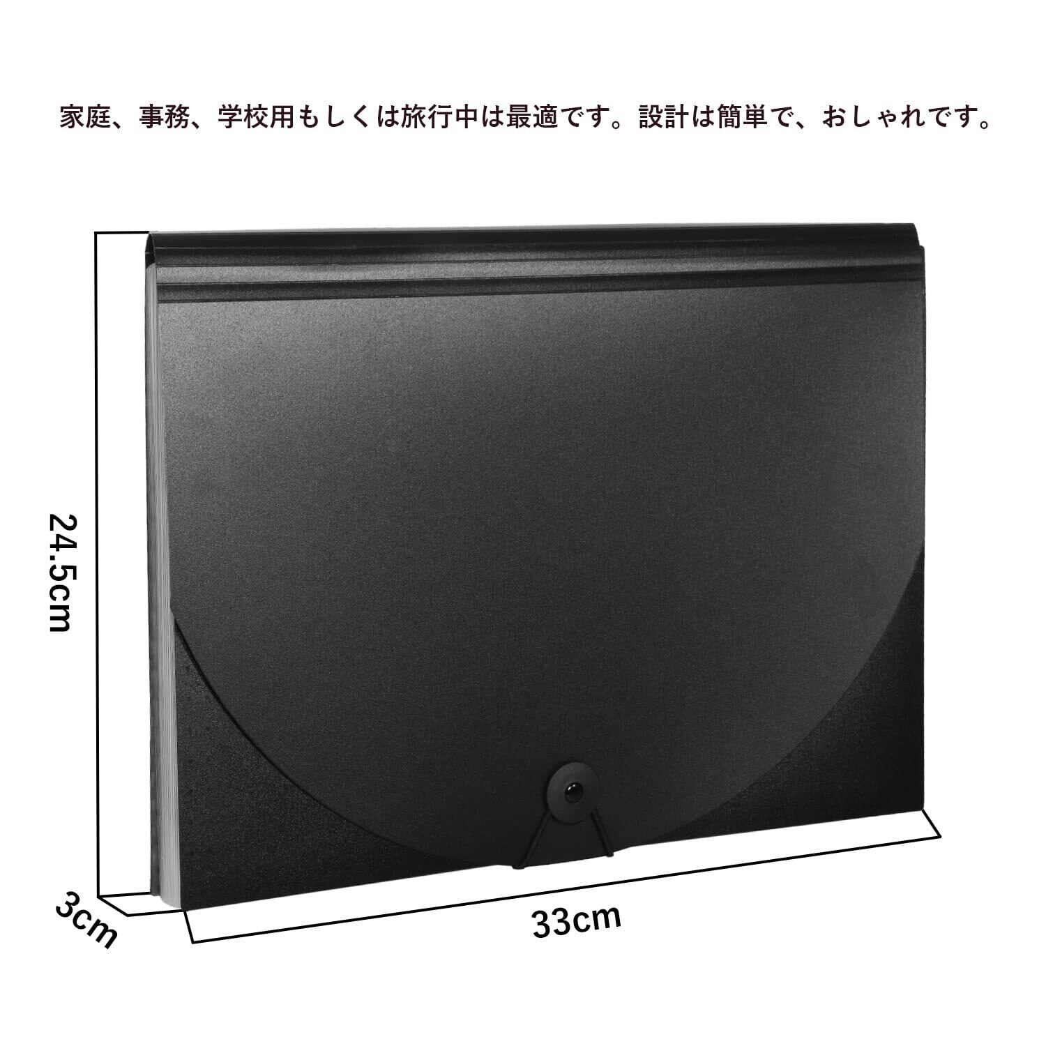 手入れ便利:アコーディオン式の書類ケースで、開口部が大きく開くため書類の検索が簡単で、取り出しやすい構造です。蓋はゴムバンドで留められており、簡単に開閉可能です。持ち歩く際にも資料がバラバラになる心配がなくて、室内の作業や室外の移動中でも安心でご利用できます。