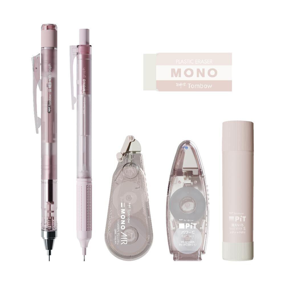 トンボ鉛筆 MONO × PiT 文房具セット パステルグラス ピンク 6点セット (シャーペン0.5mm×2本 消しゴム スティックのり 修正テープ テープのり) PCC-644DAZ