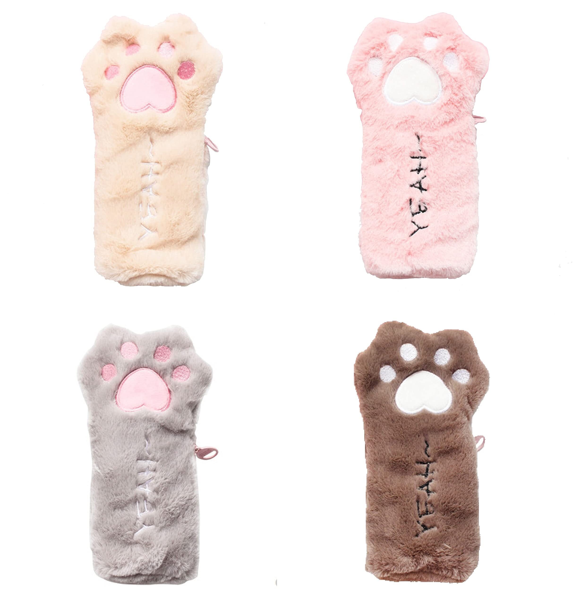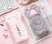 ◆かわいい モフモフ 猫 の 手 ケース ねこ スマホケース スマートフォン ケース ペンケース 筆箱 肉球 筆 入れ 筆記用具 鉛筆 ホルダー ペン ポーチ もふもふ 気持ちいい 携帯ケース 収納 文房具 女の子 新学期 入学祝い ギフト プレゼント (ベージュ)◆
